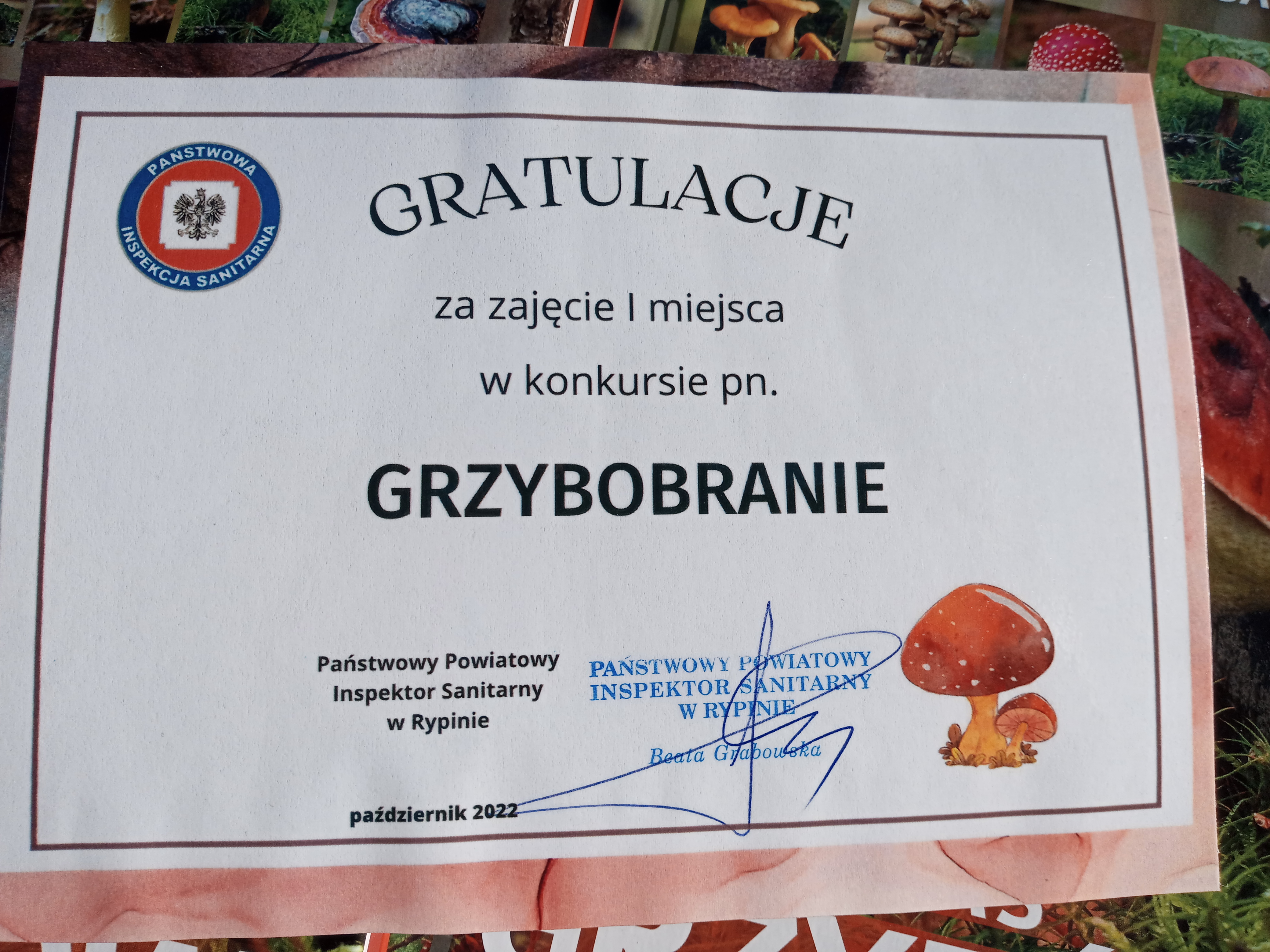 1 Października mieliśmy okazję uczestniczyć w konkursie pn. „Grzybobranie”. Klasyfikator Grzybów z Powiatowej Stacji Sanitarno-Epidemiologicznej w Rypinie wraz z Leśnikami z Nadleśnictwa Skrwilno oceniał piękne okazy. Wiele koszy cieszyło oko i zadziwiało swoją rozmaitością gatunków, dlatego była to dobra okazja do poznania rzadko spotykanych okazów. Dla pierwszych dziesięciu uczestników konkursu, czyli najlepszych zbieraczy grzybów w okolicy czekały nagrody.