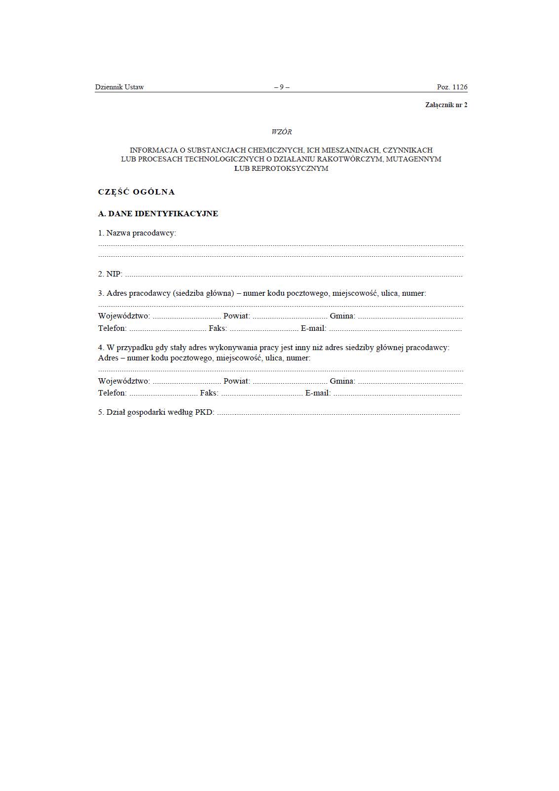 „Informacja o substancjach chemicznych, ich mieszaninach, czynnikach lub procesach technologicznych o działaniu rakotwórczym, mutagennym lub reprotoksycznym”