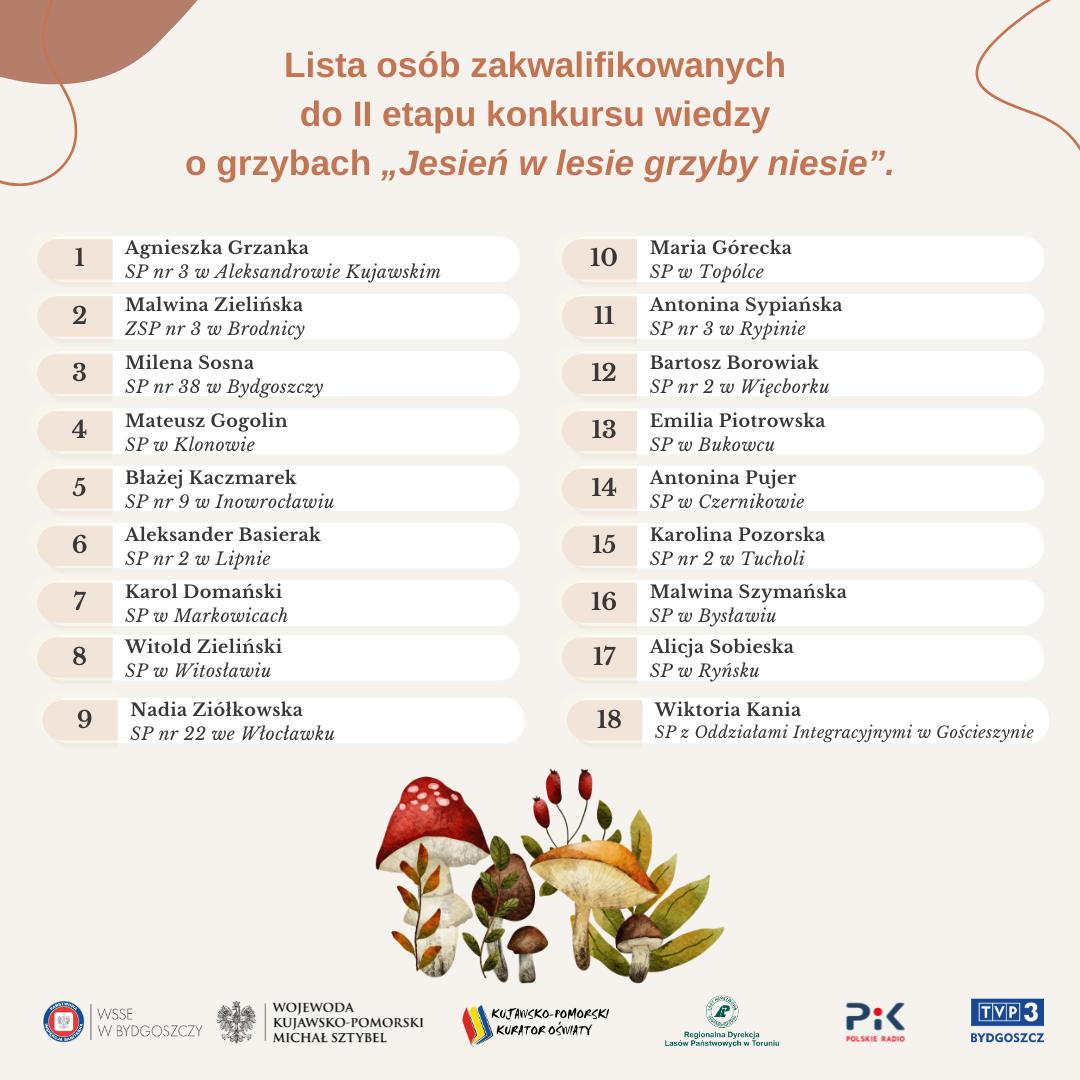 🌲🍄🌳 05.11.2025 r. odbył się etap powiatowy XV edycji Wojewódzkiego Konkursu Wiedzy o Grzybach pt. „Jesień w lesie grzyby niesie”, zorganizowany przez Wojewódzka Stacja Sanitarno-Epidemiologiczna w Bydgoszczy.