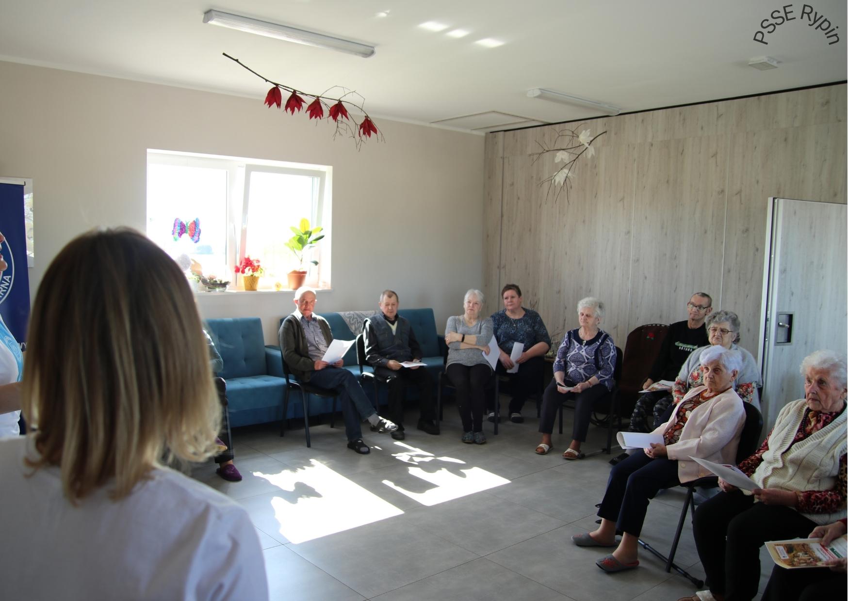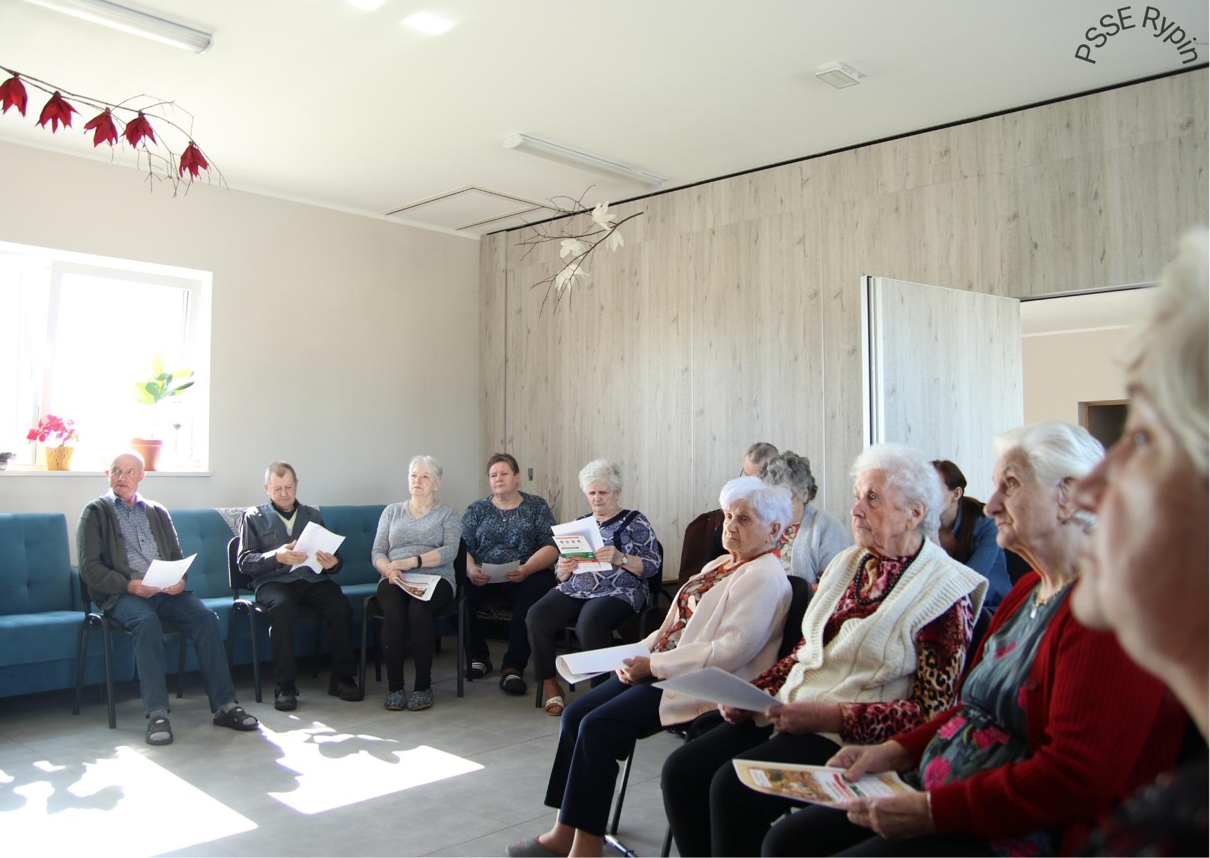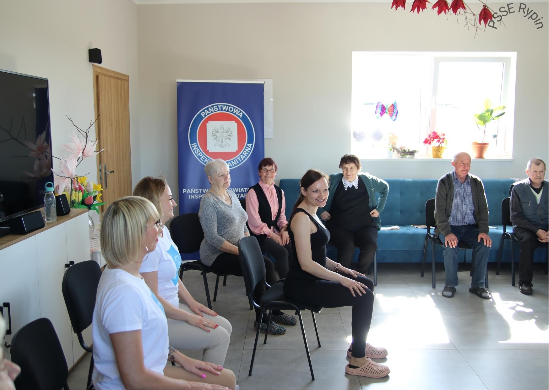 Piątkowe przedpołudnie spędziliśmy w Dziennym Domu Pobytu Senior + w Starym Kobrzyńcu. Spotkanie odbyło się w ramach działań pn. Profilaktyką w seniora. Rozmawialiśmy o zdrowym odżywianiu, piramidzie żywieniowej dla osób starszych oraz o bezpieczeństwie higieny żywności. Spotkanie zakończyliśmy miłym akcentem czyli wspólną aktywnością fizyczną.