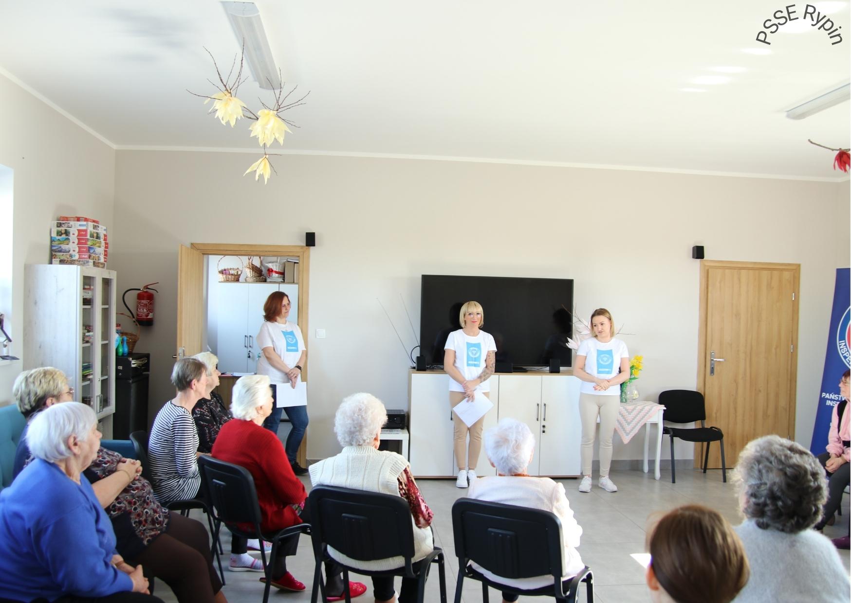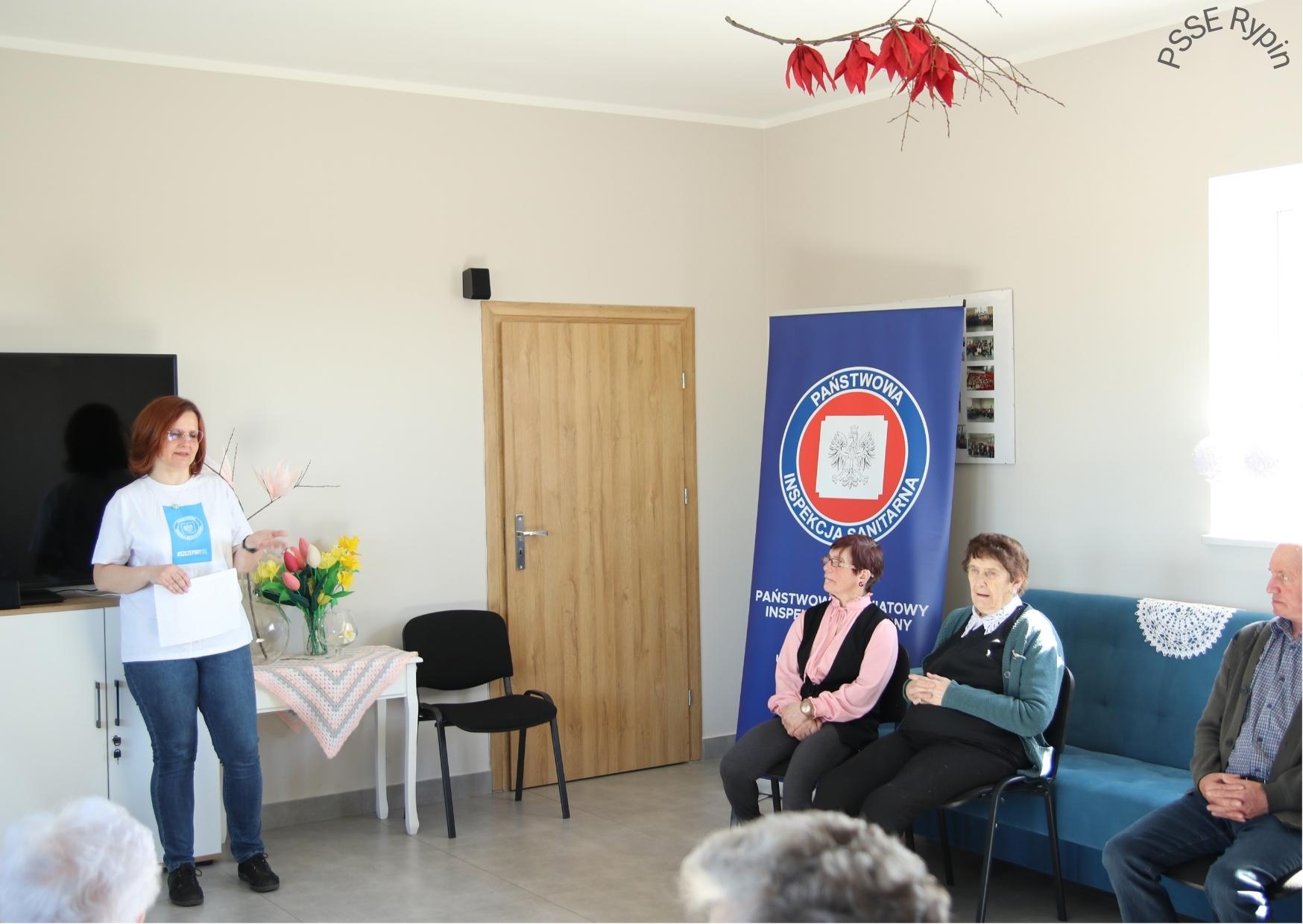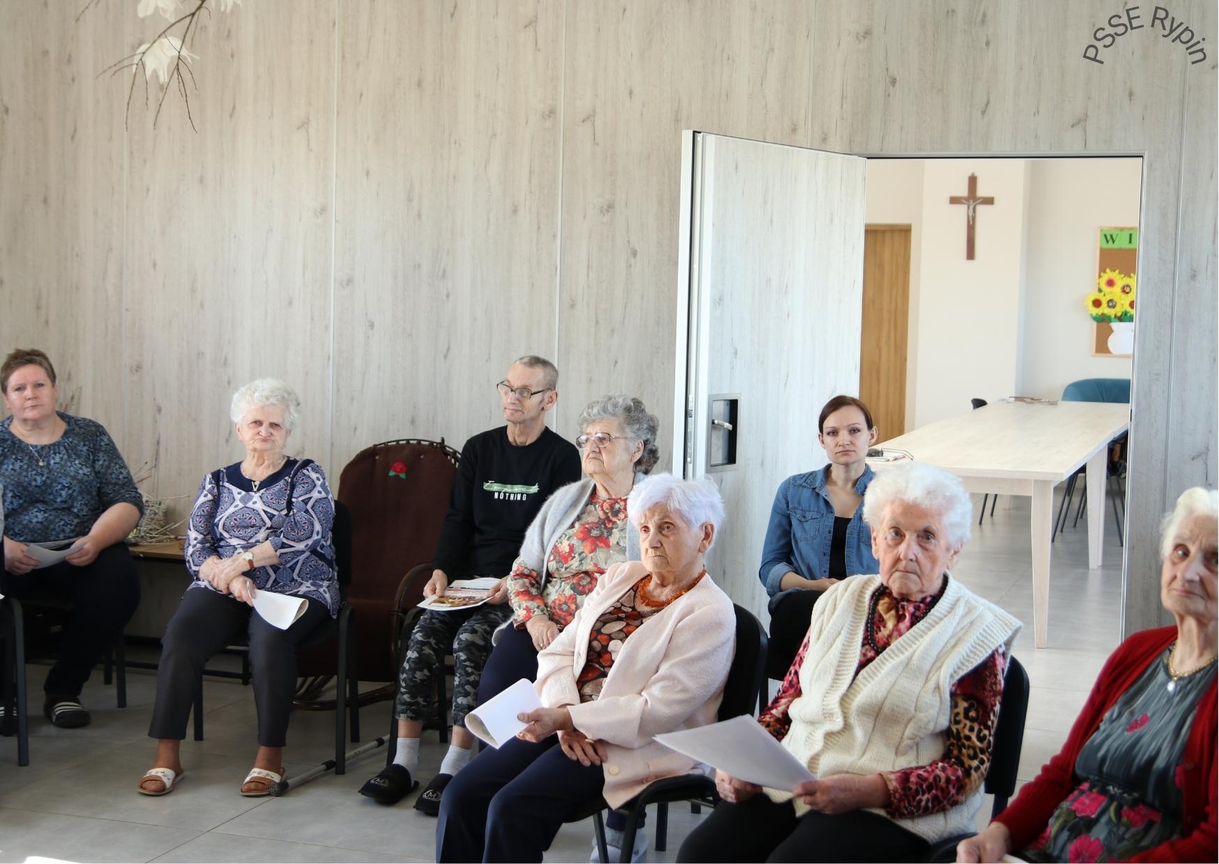 Piątkowe przedpołudnie spędziliśmy w Dziennym Domu Pobytu Senior + w Starym Kobrzyńcu. Spotkanie odbyło się w ramach działań pn. Profilaktyką w seniora. Rozmawialiśmy o zdrowym odżywianiu, piramidzie żywieniowej dla osób starszych oraz o bezpieczeństwie higieny żywności. Spotkanie zakończyliśmy miłym akcentem czyli wspólną aktywnością fizyczną.