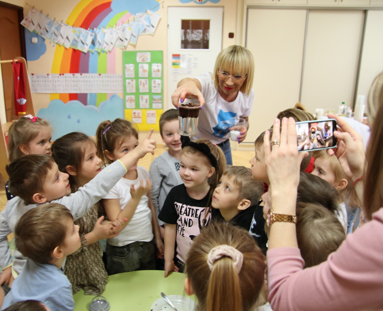 Dzisiejsze święto czyli Światowy Dzień Wody obchodziliśmy wspólnie z grupą „Sowy” Przedszkola Miejskiego nr 1 w Rypinie. Na zajęciach przygotowanych przez pracowników Powiatowej Stacji Sanitarno-Epidemiologicznej w Rypinie dzieci dowiedziały się jak ważna jest woda w życiu człowieka. „Sówki” chętnie uczestniczyły w eksperymentach związanych z wodą, a także odpowiadały na zagadki słuchowe, których głównym bohaterem była H2O.