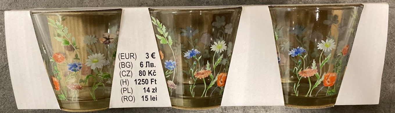 Nazwa produktu: Szklanka ze wzorem kwiatowym 250 ml (komplet 3 szklanek)