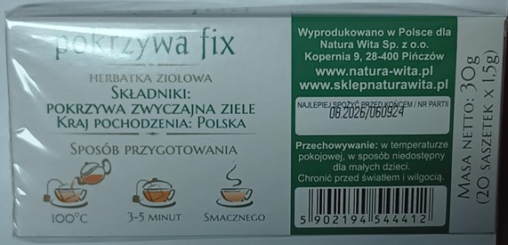 Wyprodukowano dla: Natura Wita Sp. z o. o. Kopernia 9, 28–400 Pińczów