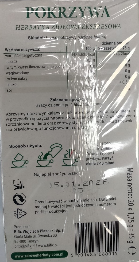 Produkt: Herbatka ziołowa pokrzywa, ekspresowa BI-FIX