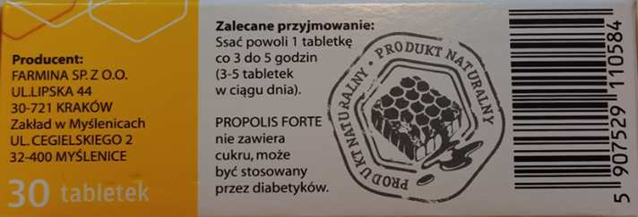 Nazwa produktu: Propolis Forte suplement diety, 30 tabletek o smaku pomarańczowym