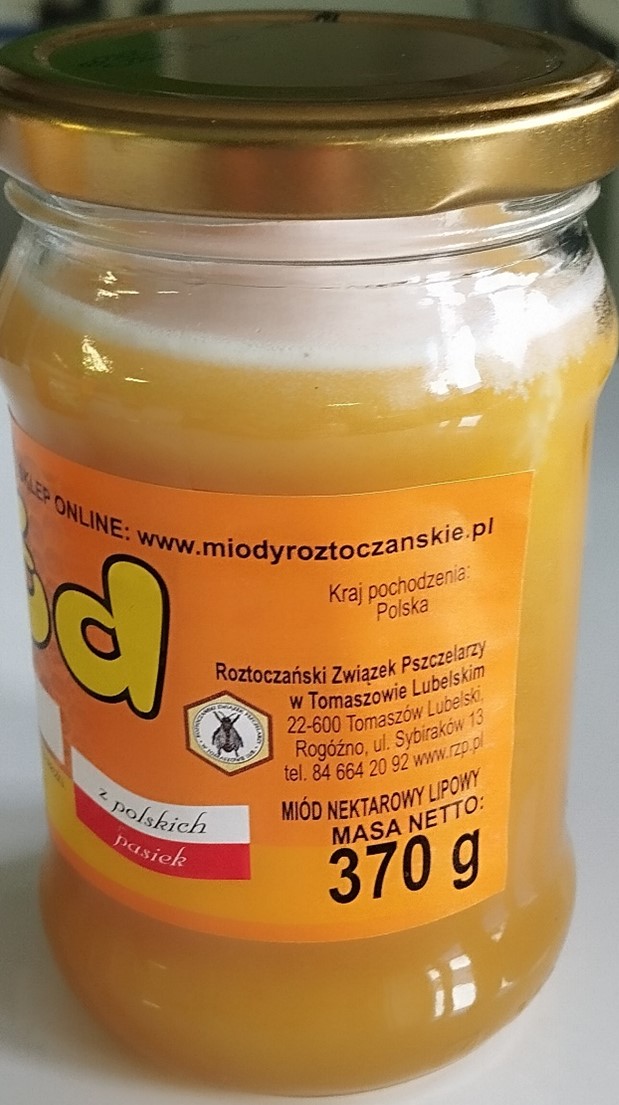 Producent: Roztoczański Związek Pszczelarzy w Tomaszowie Lubelskim Zakład Produkcyjny, Rogóźno, ul. Sybiraków 13, 22-600 Tomaszów Lubelski, WNI 06185501.