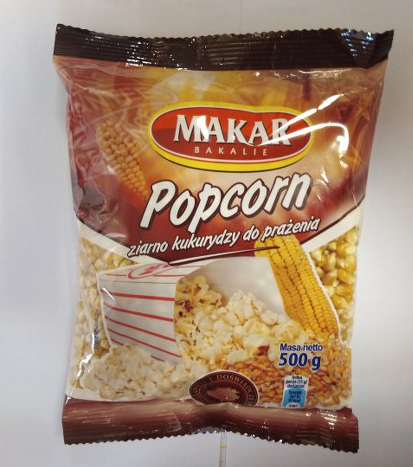 Nazwa produktu: Makar Bakalie Popcorn ziarno kukurydzy do prażenia, w opakowaniach