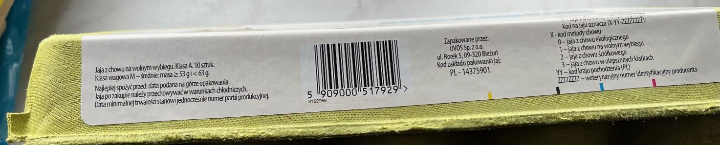 Zakład Pakowania Jaj „OVOS” Sp. z o.o. wdrożył procedurę wycofania z rynku jaj z numerem partii 24.11.2024(6) (cała partia – zarówno klasa wagowa M, jak i klasa wagowa L, ponieważ jaja obu klas wagowych pochodziły z tej samej fermy i tej samej daty zniesienia).