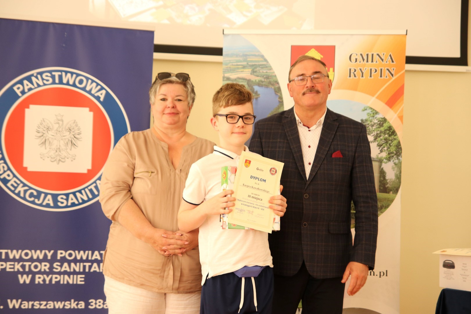 Organizatorzy konkursu plastycznego Gminna Komisja Rozwiązywania Problemów Alkoholowych Gminy Rypin oraz Powiatowa Stacja Sanitarno- Epidemiologiczna w Rypinie pod patronatem Wójta Gminy Rypin zorganizowali uroczyste wręczenie nagród, które nastąpiło podczas Światowego Dnia Bez Tytoniu w Urzędzie Gminy Rypin.