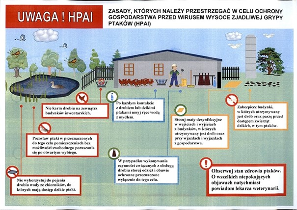 - stosuj się do zaleceń miejscowych służb sanitarnych oraz lekarzy, a także do zaleceń organów Inspekcji Weterynaryjnej, służb ochrony środowiska na terenach występowania ognisk zakażeń wśród ptaków w Polsce i za granicą
