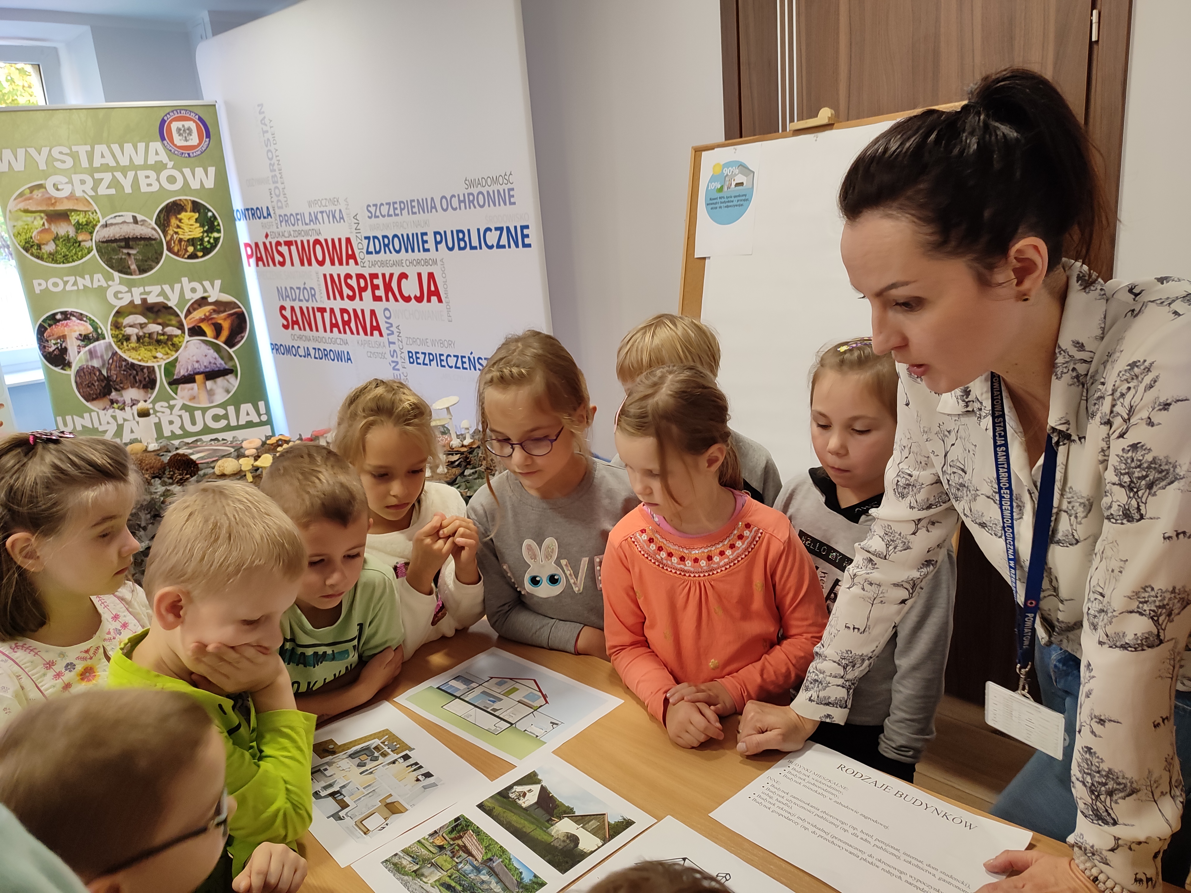 Podczas wizyty w naszej stacji dzieci dowiedziały się w jaki sposób bada się wodę, jak dokładnie myć ręce oraz co powinno znaleźć się w „zdrowym domu”. Uczestnicy zajęć zobaczyli jak poprawnie spakować szkolny plecak i co powinno się w nim znaleźć Największym zainteresowaniem cieszyła się wystawa grzybów. Nasi mali goście mieli okazję poznać blisko 50 gatunków grzybów oraz dowiedzieć się jak rozpoznać gatunki jadalne i trujące.