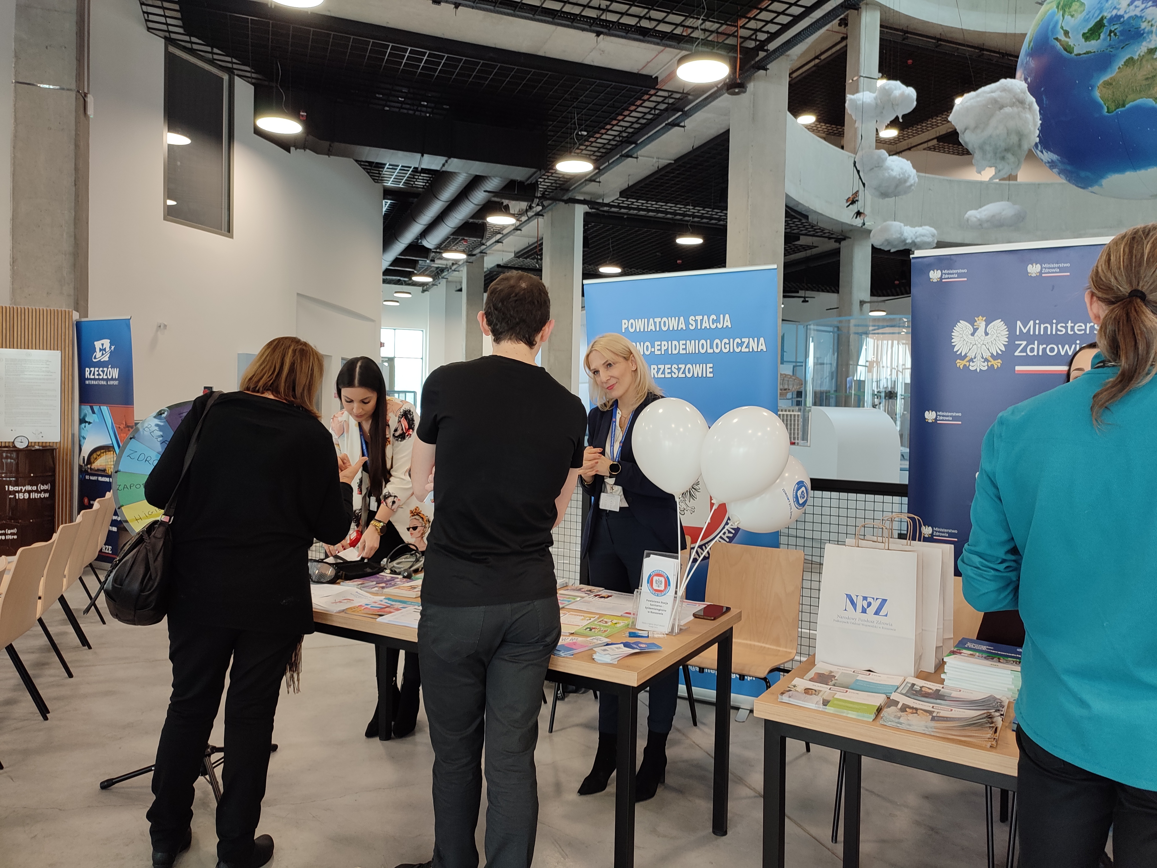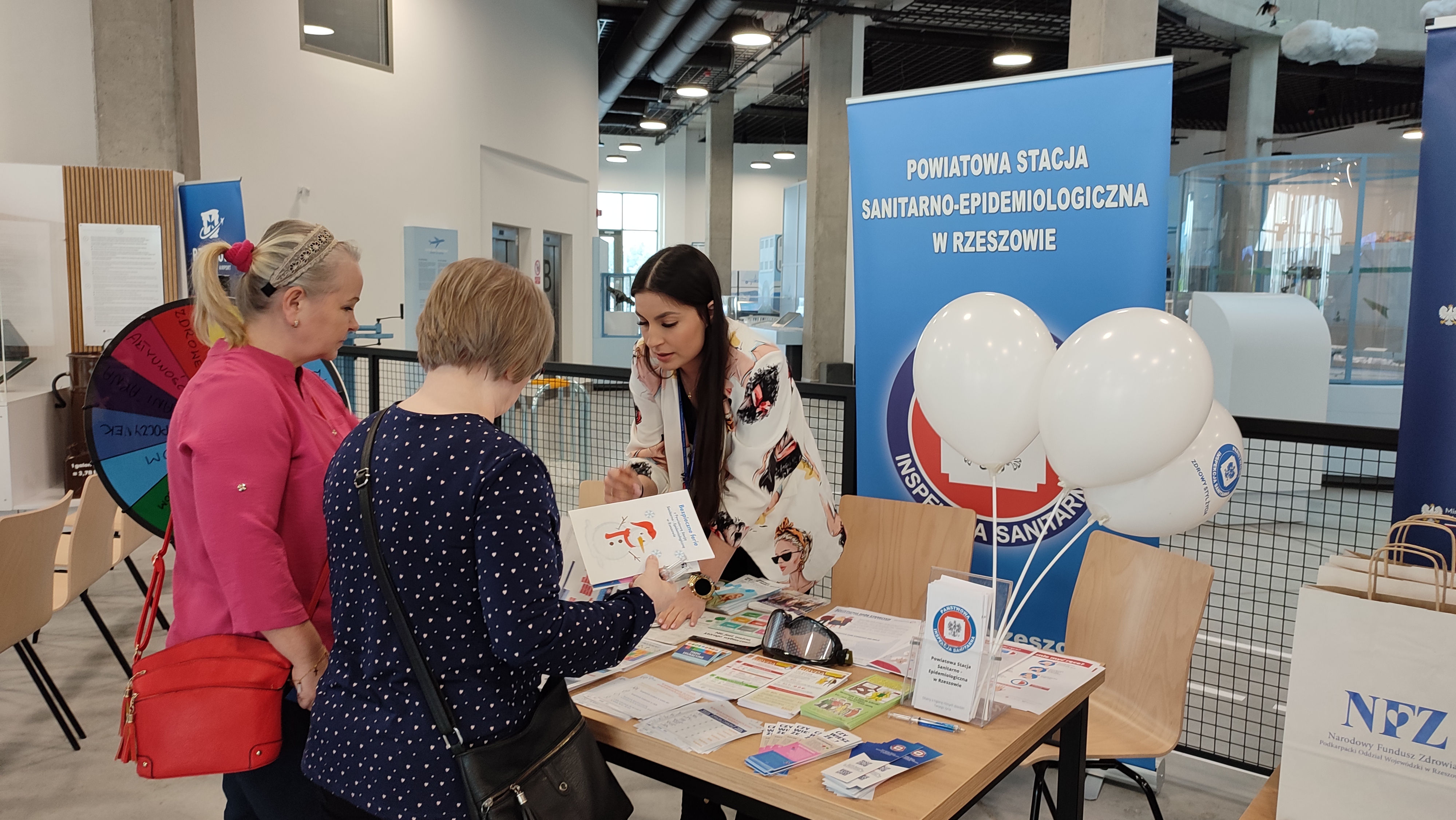Głównym tematem spotkania były szczepienia ochronne. Pracownicy Sekcji Oświaty Zdrowotnej i Promocji Zdrowia PSSE w Rzeszowie udzielali informacji o profilaktyce zdrowia, aktualnym kalendarzu szczepień oraz liście szczepień refundowanych. Osoby odwiedzające nasze stoisko edukacyjne miały okazję zmierzyć ciśnienie krwi, zbadać poziom tlenku węgla w wydychanym powietrzu za pomocą smokolizera oraz przymierzyć narkogogle i przekonać się jak działają nasze zmysły po zażyciu narkotyków. Uczestnicy wydarzenia mieli również możliwość sprawdzenia swojej wiedzy dotyczącej zdrowych nawyków losując pytania za pomocą „Koła zdrowia”.
