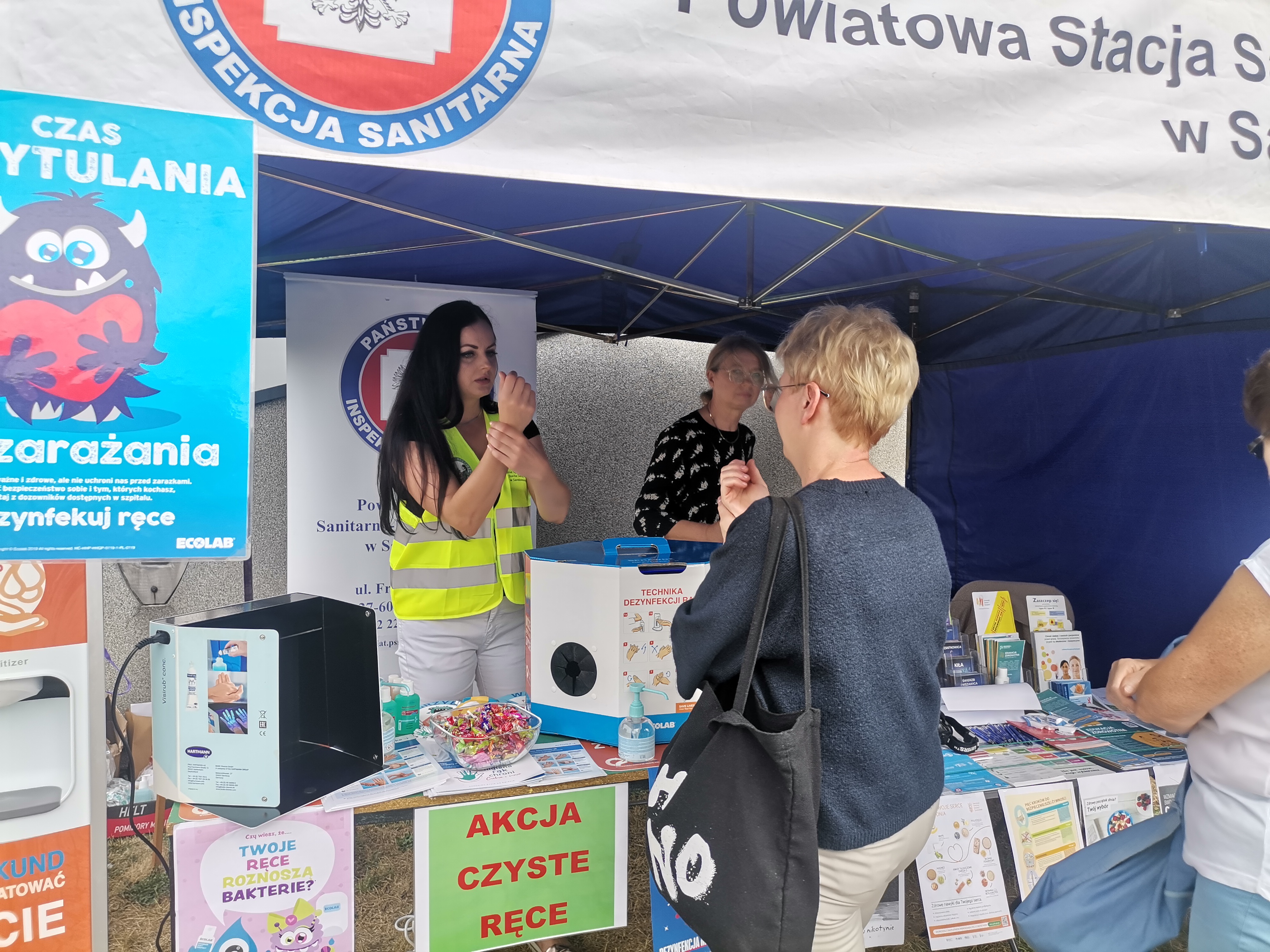 Pracownicy Powiatowej Stacji Sanitarno-Epidemiologicznej udzielali informacji na temat zasad zdrowego stylu życia. Z osobami zainteresowanymi rozmawiano na temat profilaktyki chorób zakaźnych, profilaktyki poprzez szczepienia ochronne, jak chronić się przed ukąszeniami przez kleszcze, bezpieczeństwo żywności, zasady zdrowego odżywiania, propagowano kampanię edukacja zdrowotna. Przestrzegano przed środkami uzależniającymi w tym energetykami, które źle wpływają zwłaszcza na młode organizmy. W celu zobrazowania jak substancje uzależniające zmieniają zachowania prezentowano alkogoogle i narkogoogle - okulary symulujące odczucia po zażyciu substancji psychoaktywnych (alkohol, narkotyki czy tzw. „dopalacze”). Działaliśmy w myśl zadady: