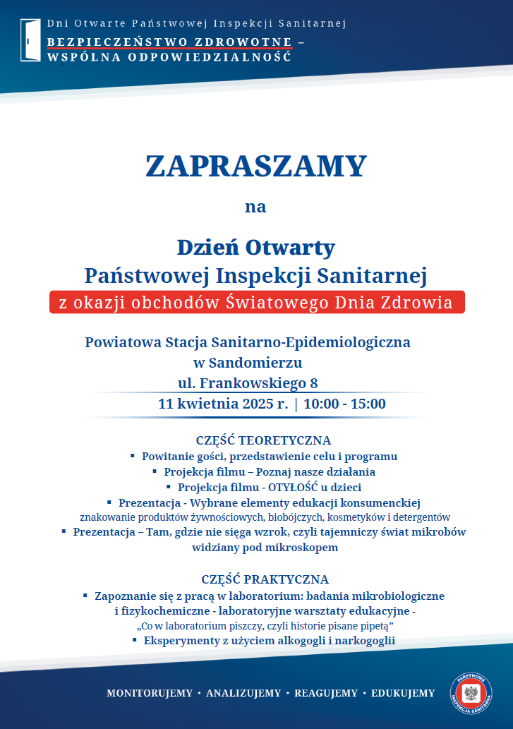 ZAPRASZAMY na Dzień Otwarty Państwowej Inspekcji Sanitarnej z okazji obchodów Światowego Dnia Zdrowia