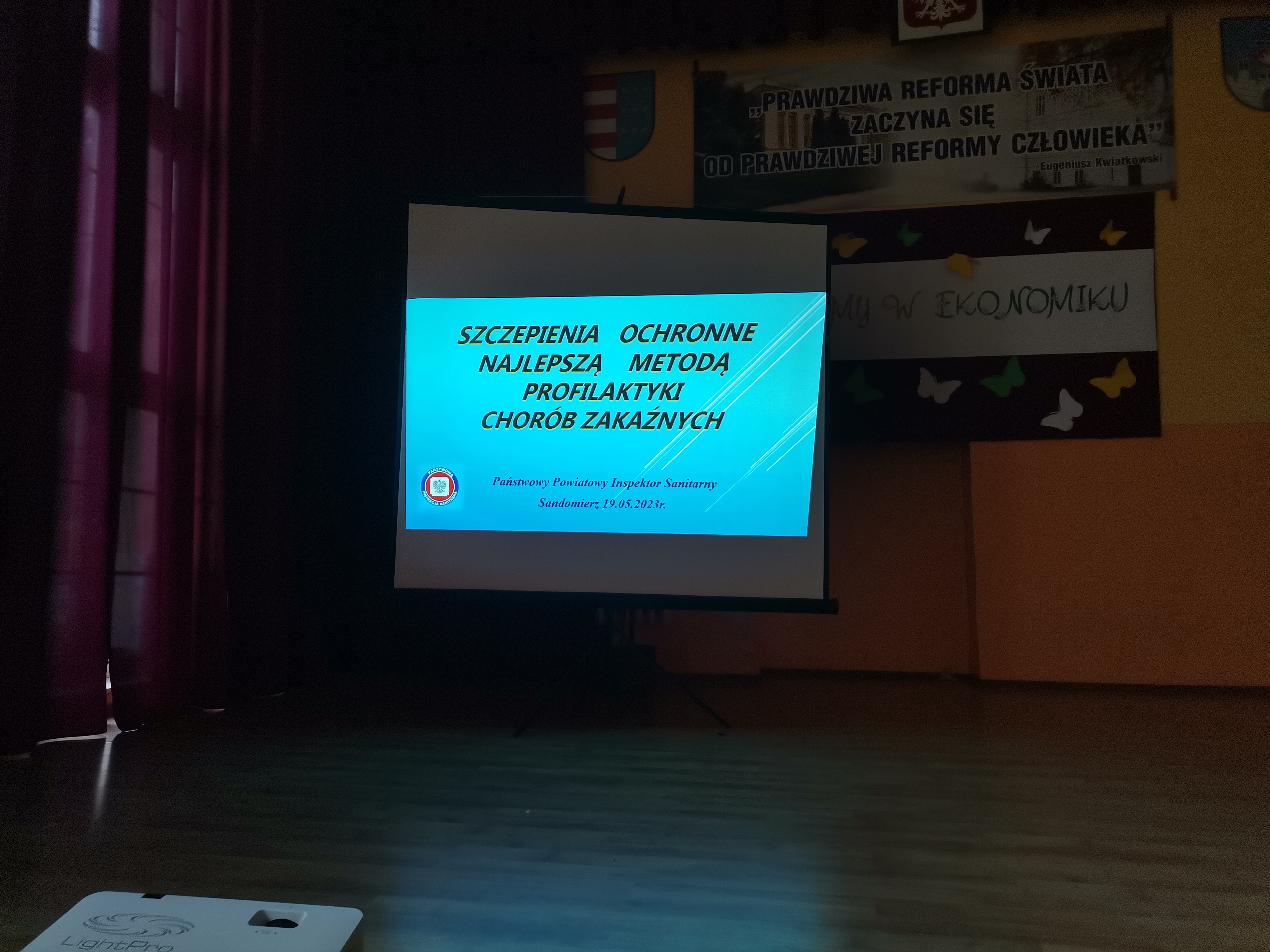 W dniu 19 maja br. pracownicy Powiatowej Stacji Sanitarno-Epidemiologicznej w Sandomierzu byli obecni w Zespół Szkół Ekonomicznych im. Eugeniusza Kwiatkowskiego w Sandomierzu w celu przeprowadzenia edukacji na temat profilaktyki szczepień ochronnych.