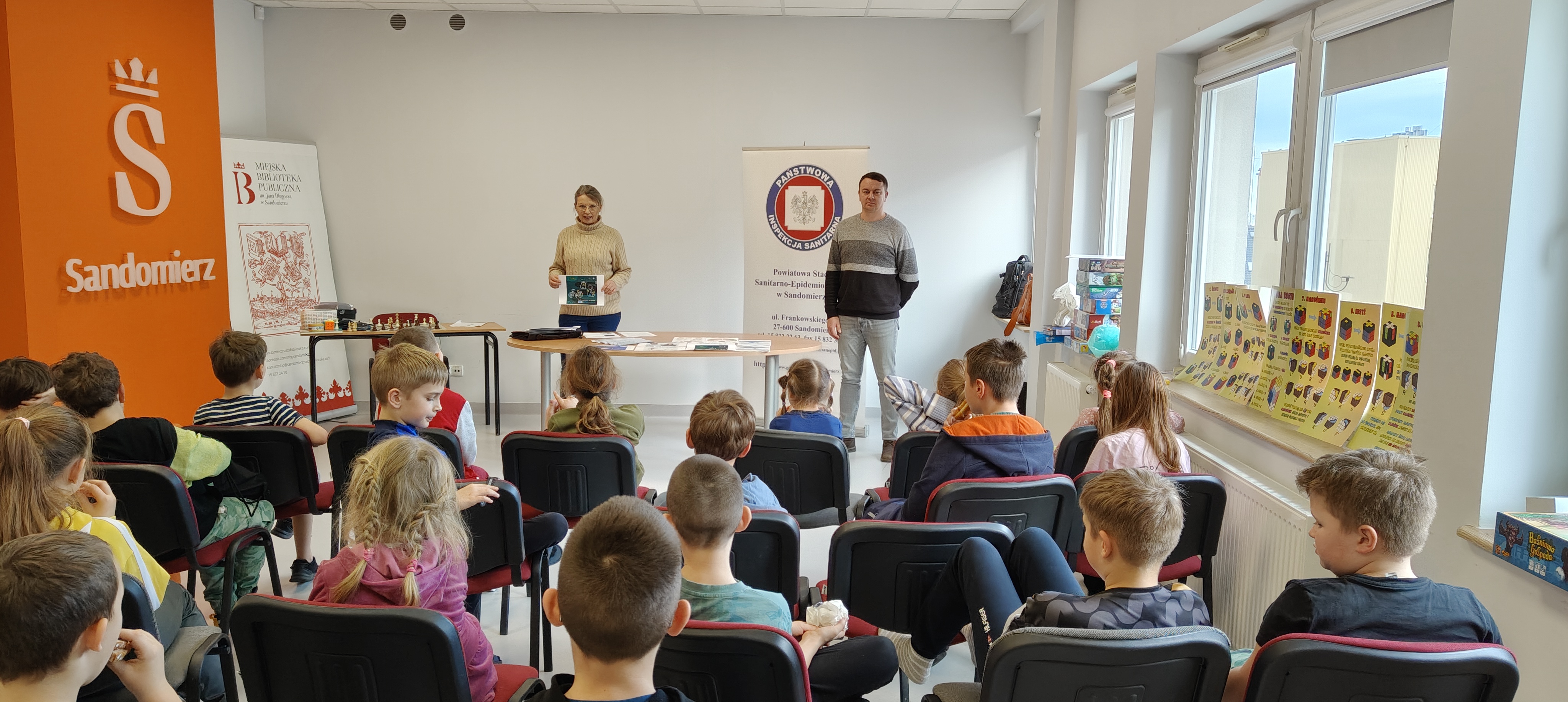 W drugim tygodniu Ferii zimowych br. pracownicy Powiatowej Stacji Sanitarno-Epidemiologicznej w Sandomierzu przeprowadzili działania profilaktyczno-edukacyjne dla uczestników półkolonii zorganizowanej przez Spółdzielnię Socjalną Salve Regina w Sandomierzu w Miejskiej Bibliotece Publicznej im. Jana Długosza ul. Parkowa 1 w Sandomierzu oraz dla uczestników zajęć w Świetlicy Środowiskowej ul. Słowackiego w Sandomierzu