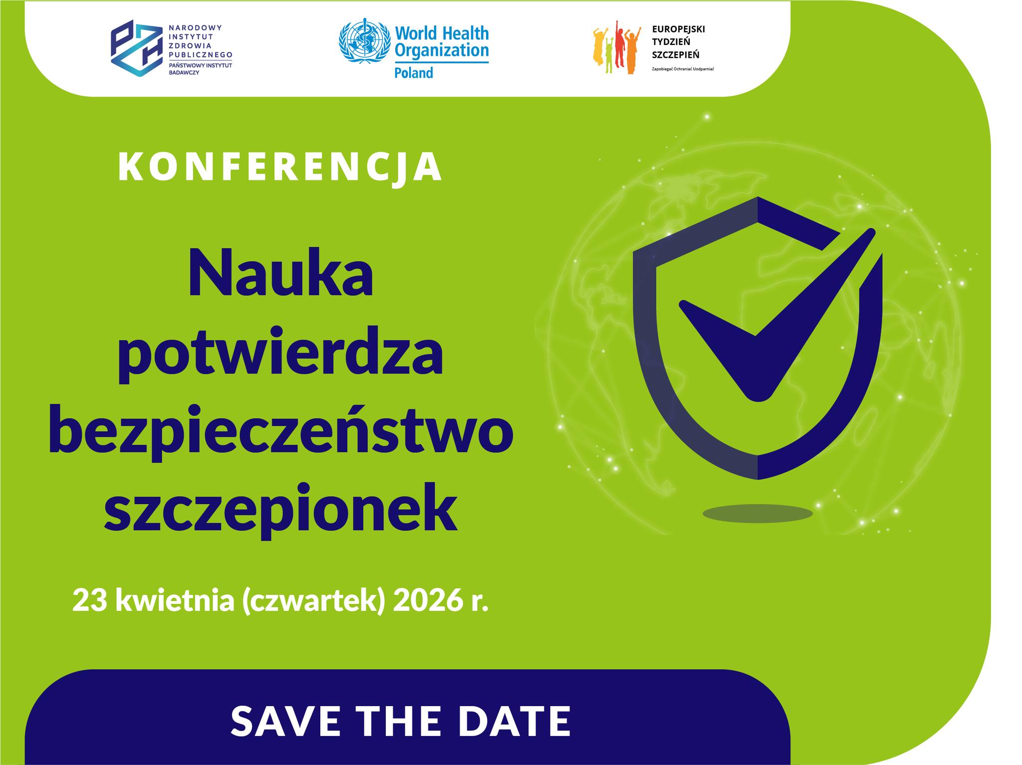 W ramach Europejskiego Tygodnia Szczepień dnia 23 kwietnia 2026 r. Narodowy Instytut Zdrowia Publicznego – Państwowy Instytut Badawczy we współpracy z World Health Organization Poland (WHO), organizuje konferencję: „Nauka potwierdza bezpieczeństwo szczepionek”.
