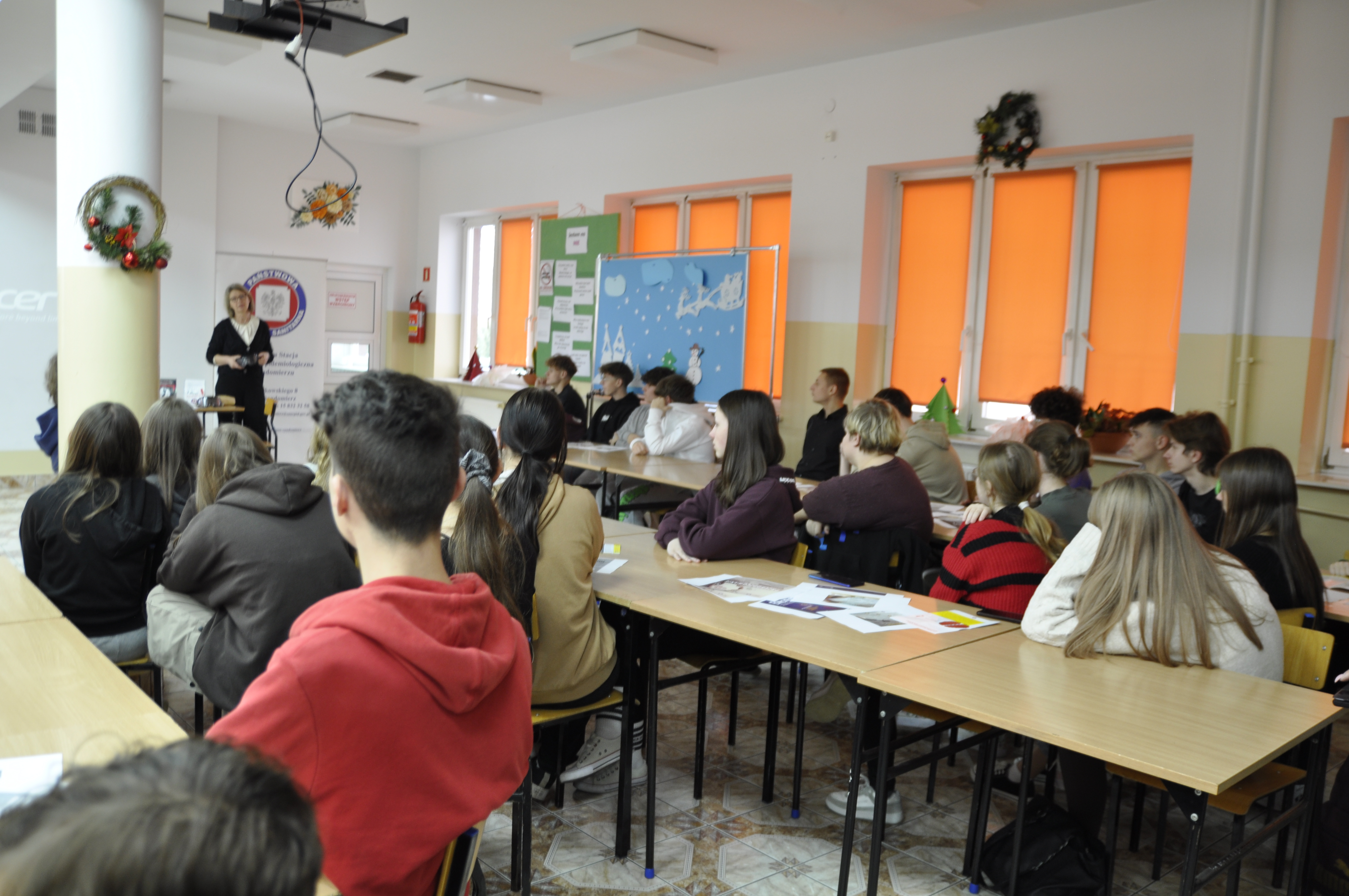 W dniu 14 grudnia br. pracownik Powiatowej Stacji Sanitarno-Epidemiologicznej w Sandomierzu był obecny w Zespole Placówek Oświatowych w Klimontowie ul. Zysmana 9. Spotkania edukacyjne skierowane były do uczniów liceum i uczniów klas VI-VIII szkoły podstawowej. Poruszano tematykę dotyczącą skutków zdrowotnych palenia tytoniu zarówno osoby palącej jak również biernego palacza oraz uzależnienia od środków psychoaktywnych. Prezentowano alkogogle, narkogogle, smokerlyzer. Przeprowadzono kolportaż materiałów edukacyjnych dotyczących szkodliwości używek w tym „energetyków”.