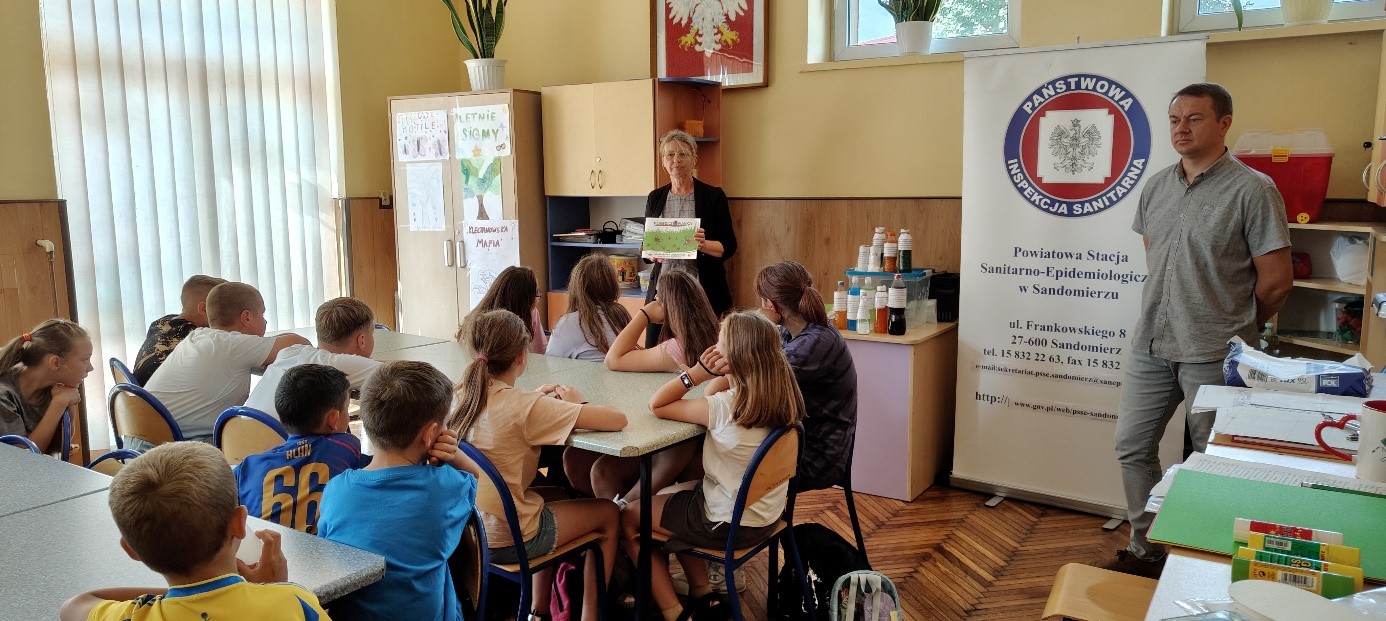 W dniu 30 lipca 2025 roku pracownicy Powiatowej Stacji Sanitarno-Epidemiologicznej w Sandomierzu byli w Szkole Podstawowej im. Batalionów Chłopskich w Kleczanowie, gdzie Związek Młodzieży Wiejskiej z siedzibą w Warszawie zorganizował półkolonię dla dzieci i młodzieży.