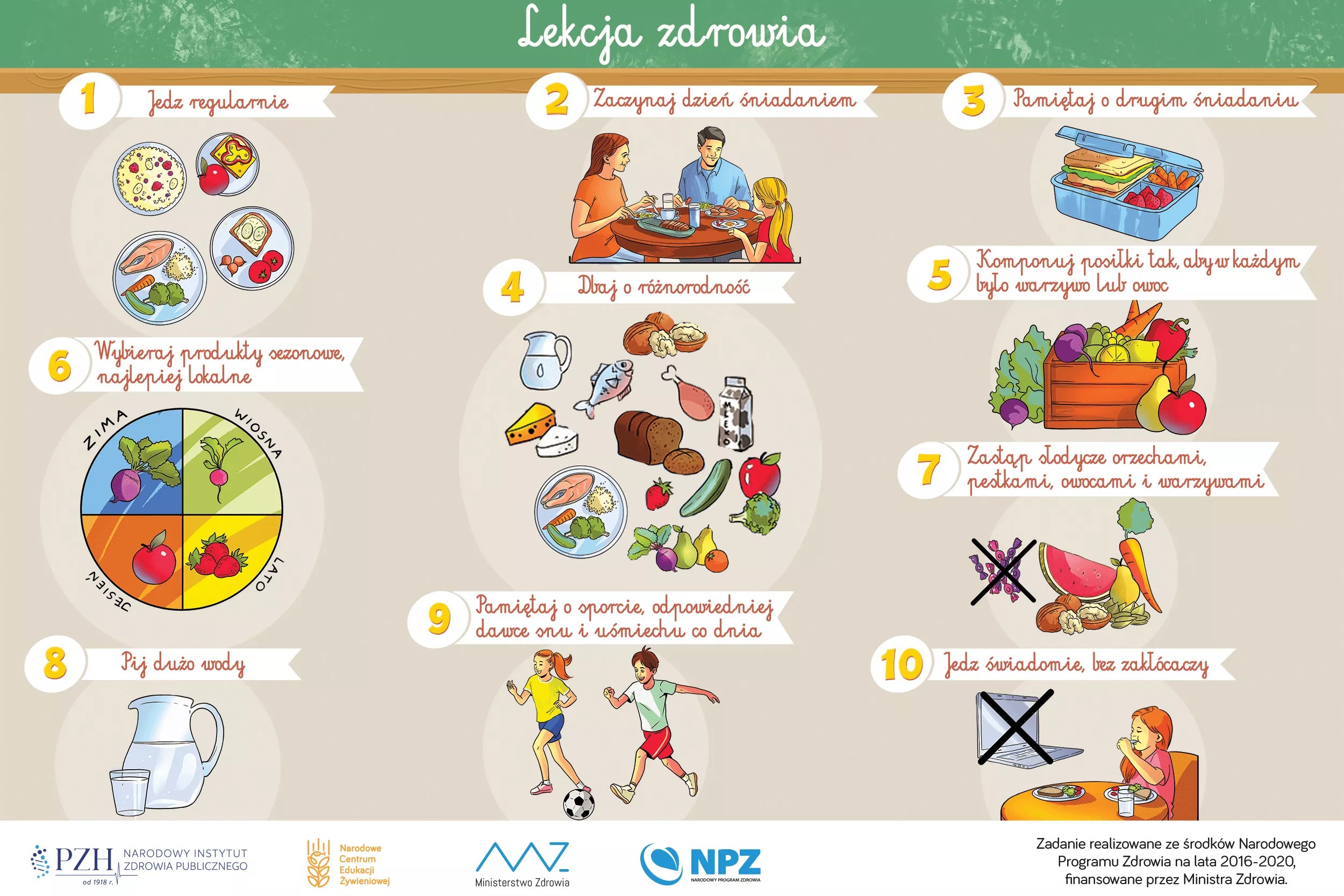 Zasady zdrowego odżywiania omówiono na podstawie piramidy zdrowego stylu życia. W dwóch grupach wiekowych omówiono: