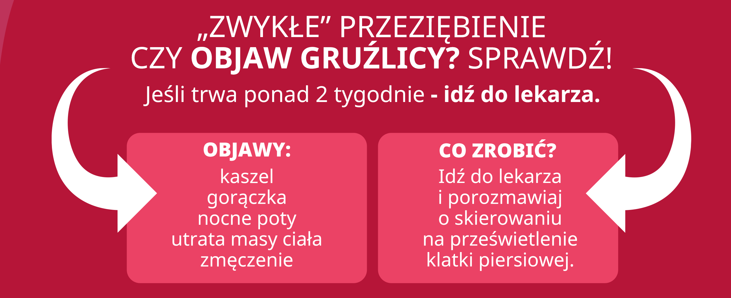 Gruźlica jest bakteryjną chorobą zakaźną, która może dotknąć każdego. Wywołują ją prątki gruźlicy. Bakterie przenoszą się drogą kropelkową podczas kaszlu, kichania, mówienia osoby chorej. Biuro Krajowe Światowej Organizacji Zdrowia (WHO) w Polsce we współpracy z Polskim Towarzystwem Chorób Płuc realizują ogólnopolską kampanię „Zwykły kaszel czy objaw gruźlicy? Sprawdź!”, w której namawiają do badań profilaktycznych oraz wczesnej diagnostyki.