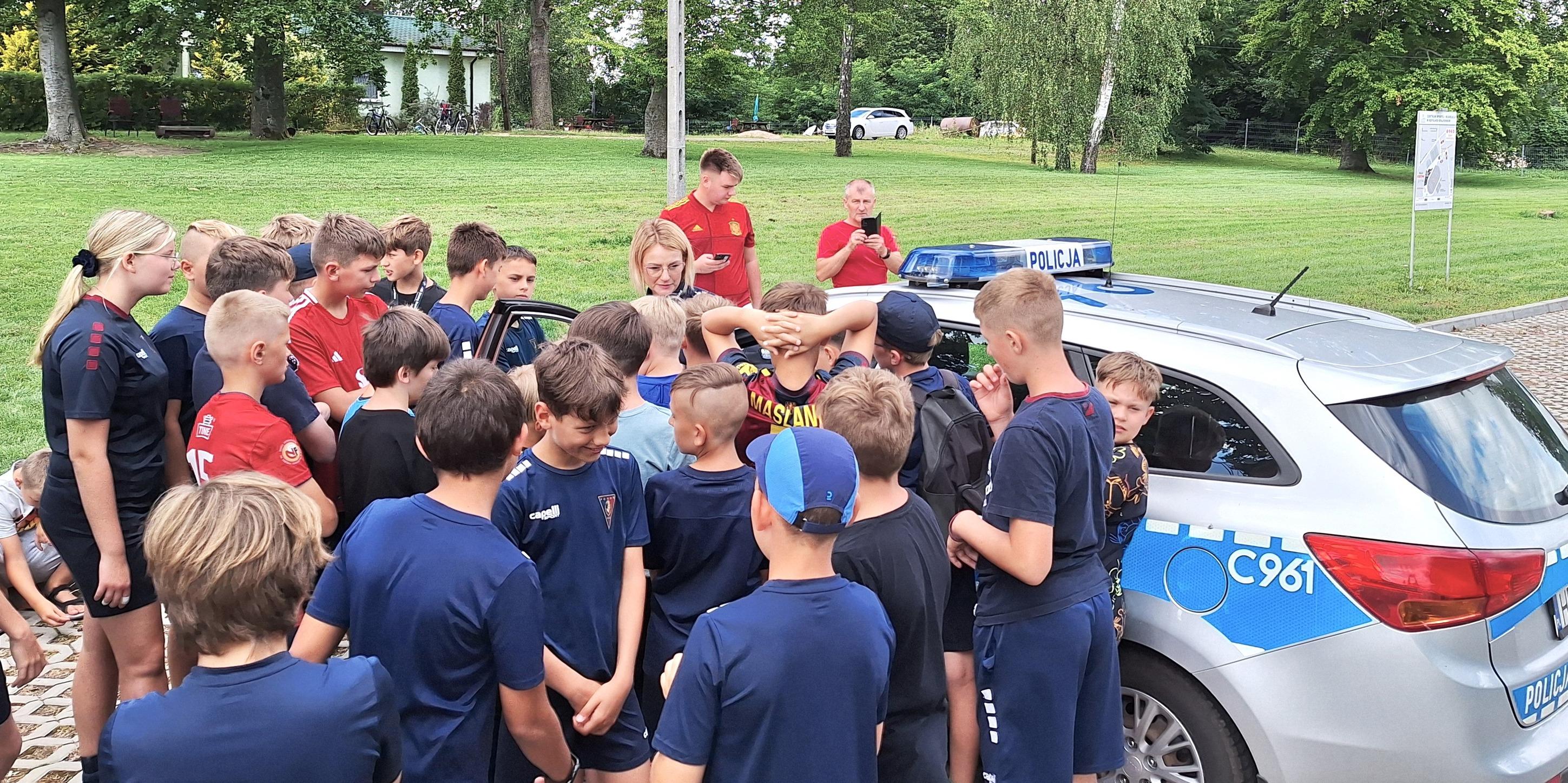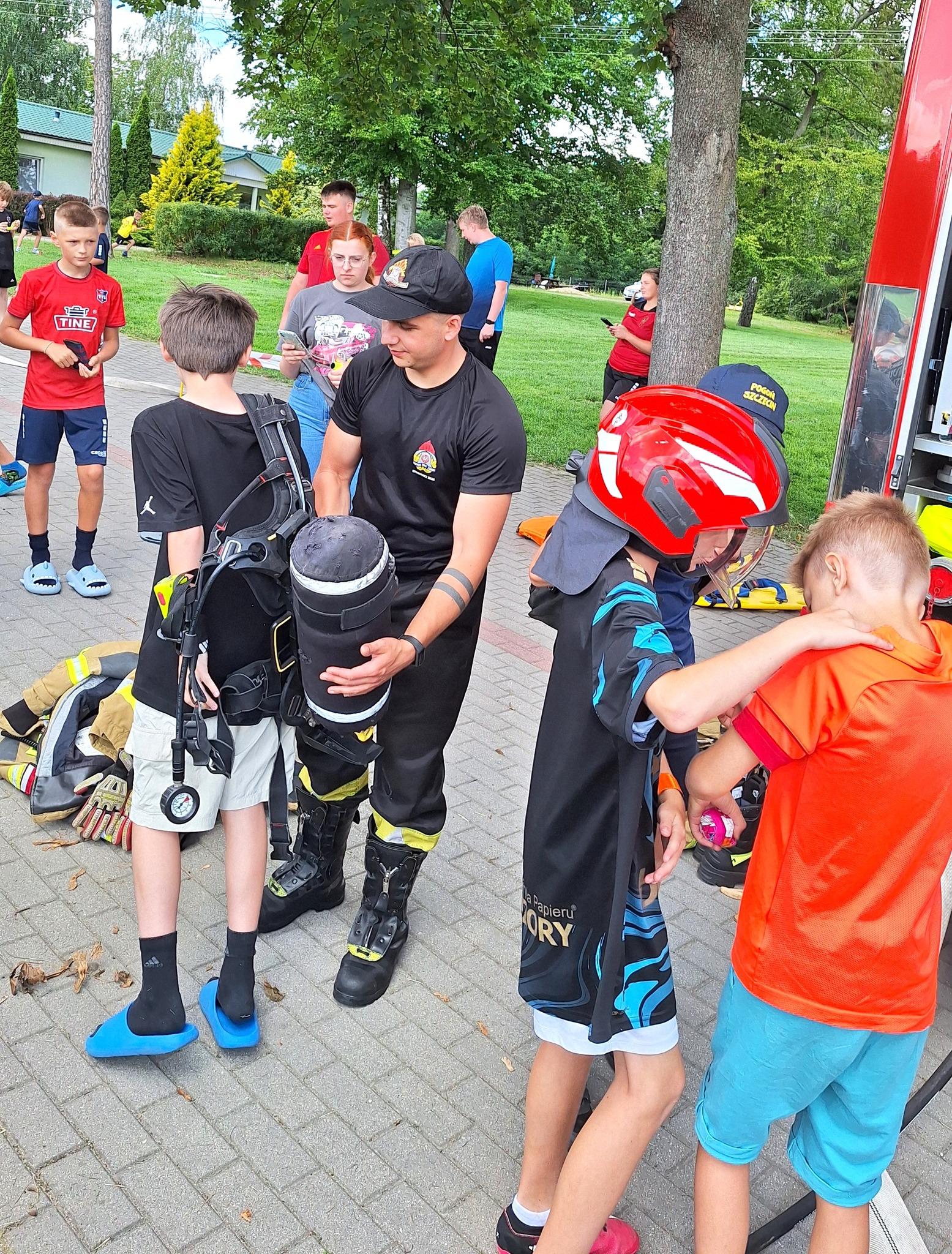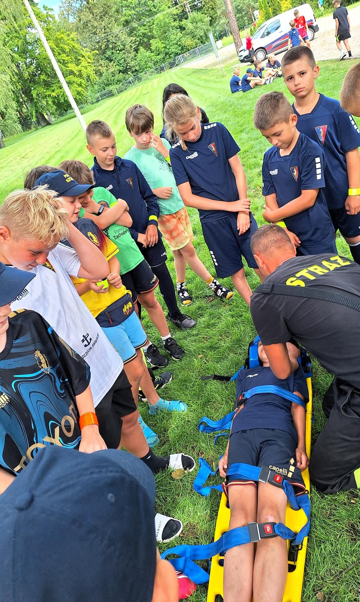 Na półmetku wakacji spotkaliśmy się z uczestnikami półkolonii oraz obozu sportowego piłki nożnej zorganizowanych w Centrum Sportu i Rekreacji w Sępólnie Krajeńskim. W trakcie spotkania rozmawialiśmy o szeroko rozumianym bezpieczeństwie podczas wakacji letnich, m.in. o sposobach ochrony zdrowia w trakcie upałów, profilaktyce ukąszeń przez kleszcze, a szczególnie o zasadach bezpiecznego wypoczynku nad wodą. Spotkanie było dodatkowo okazją do rozmów o specyfice pracy służb odpowiedzialnych za bezpieczeństwo oraz prezentacji wykorzystywanego sprzętu. Duża atrakcją była możliwość obejrzenia wyposażenia wozu strażackiego. Dodatkowo każdy uczestnik mógł na chwilę stać się strażakiem i użyć strażackiego węża. Osoby zainteresowane mogły posłuchać o pracy funkcjonariuszy Policji i wsiąść do policyjnego radiowozu. Pytań dotyczących pracy w służbach mundurowych nie było końca. Na zakończenie spotkania uczestnicy mieli możliwość ochłodzić się wodą z węża strażackiego.