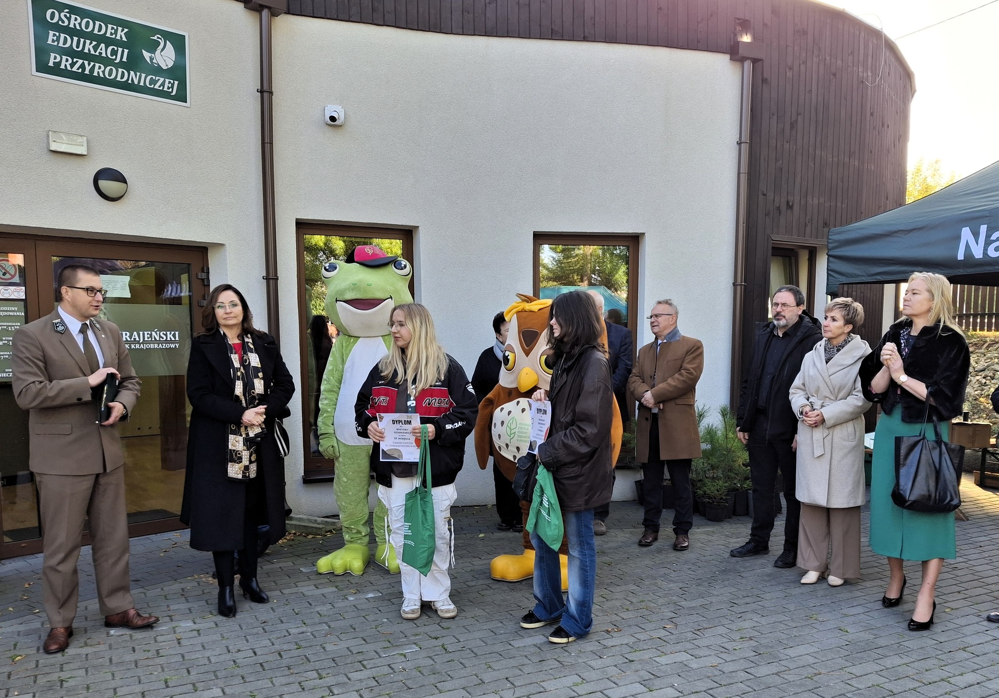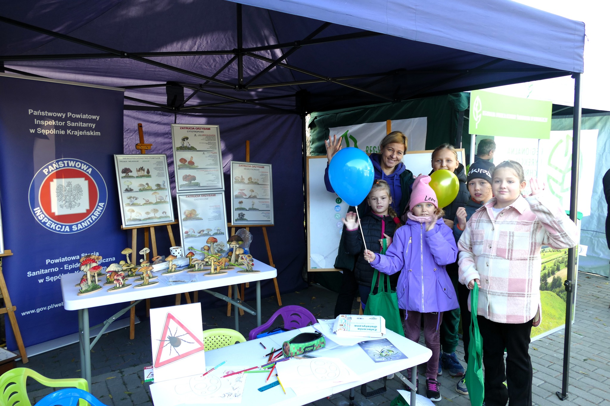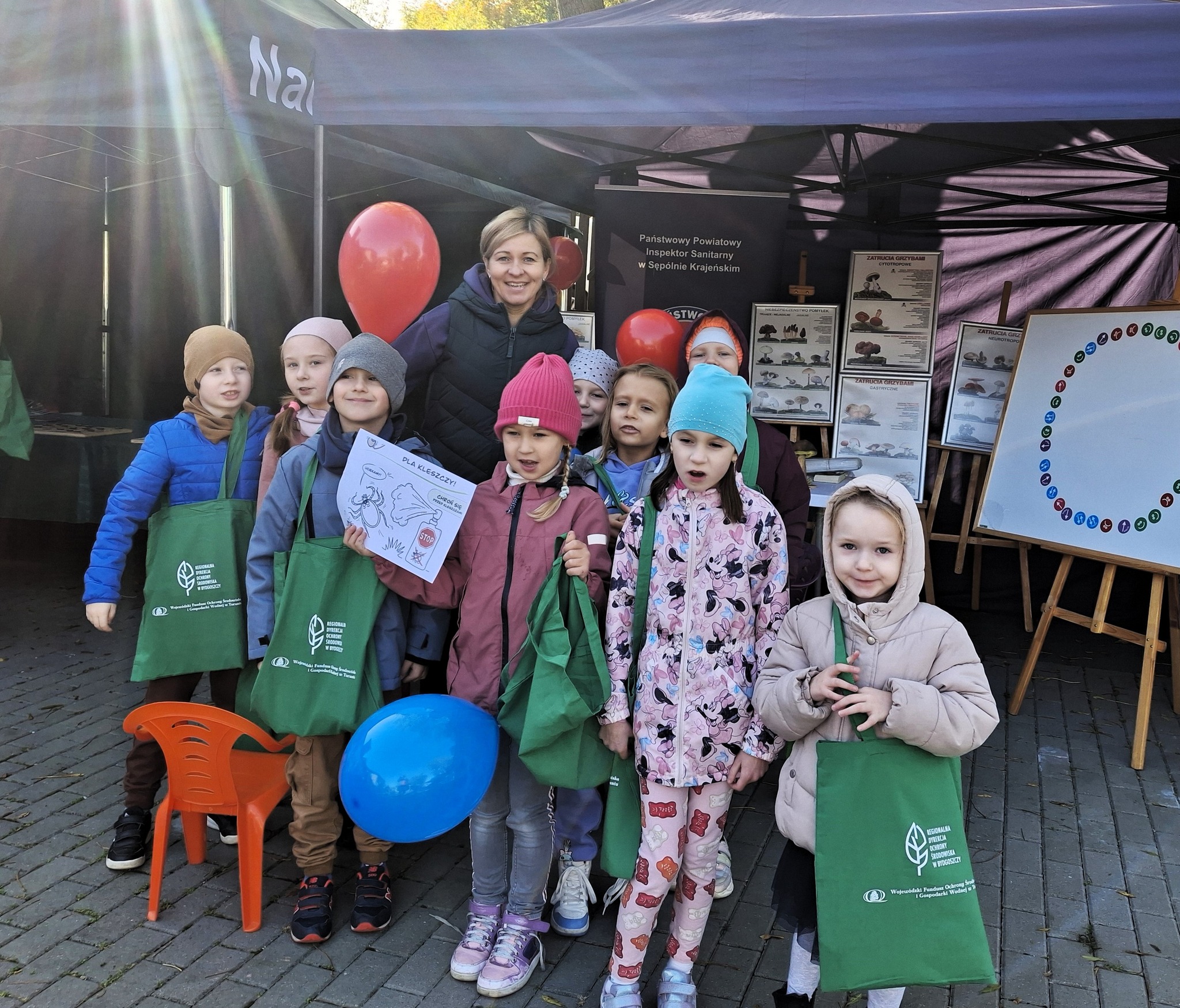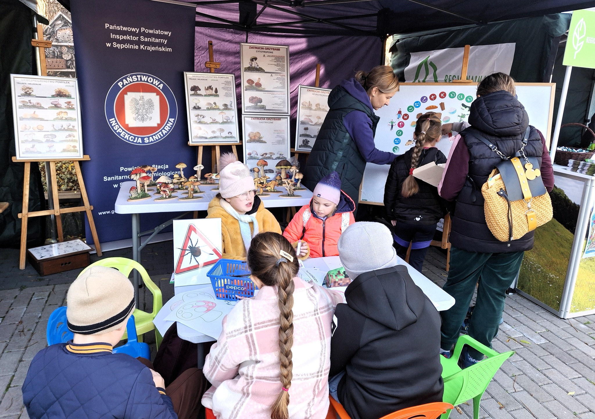 Z tej okazji w dniu 18.10.2024 roku w Ośrodku Edukacji Przyrodniczej Krajeńskiego Parku Krajobrazowego odbył się piknik edukacyjny, na którym prowadzona była edukacja oraz warsztaty o tematyce zasobów krajobrazu, rozstrzygnięto konkursy przyrodnicze i promowano wiedzę ekologiczną. W wydarzeniu uczestniczył Państwowy Powiatowy Inspektor Sanitarny w Sępólnie Krajeńskim. Obecni na pikniku mogli między innymi samodzielnie przygotować witraż z kwiatów, gałązek i liści drzew, odcisnąć ślady i tropy zwierząt leśnych. Przy stanowisku edukacyjnym naszej Stacji nie zabrakło ciekawostek dotyczących grzybów, które są nieodzownym elementem naszego krajobrazu. Uczestnicy mogli zapoznać się zasadmi pozwalających na rozróżnienie grzybów jadalnych od tych, które są niejadalne, bądź trujące. Wiedza ta jest niezbędna dla uniknięcia zatruć grzybami. Koło fortuny przygotowane przez Nadleśnictwo Lutówko cieszyło się również sporym zainteresowaniem. Z kolei Żaba i Sowa mega maskotki z Regionalnej Dyrekcji Ochrony Środowiska w Bydgoszczy, które spacerowały na pikniku sprawiły wielką radość szczególnie najmłodszym. Nie zabrakło także KGW Runowo, które przygotowało posiłek regeneracyjny dla wszystkich uczestników pikniku.