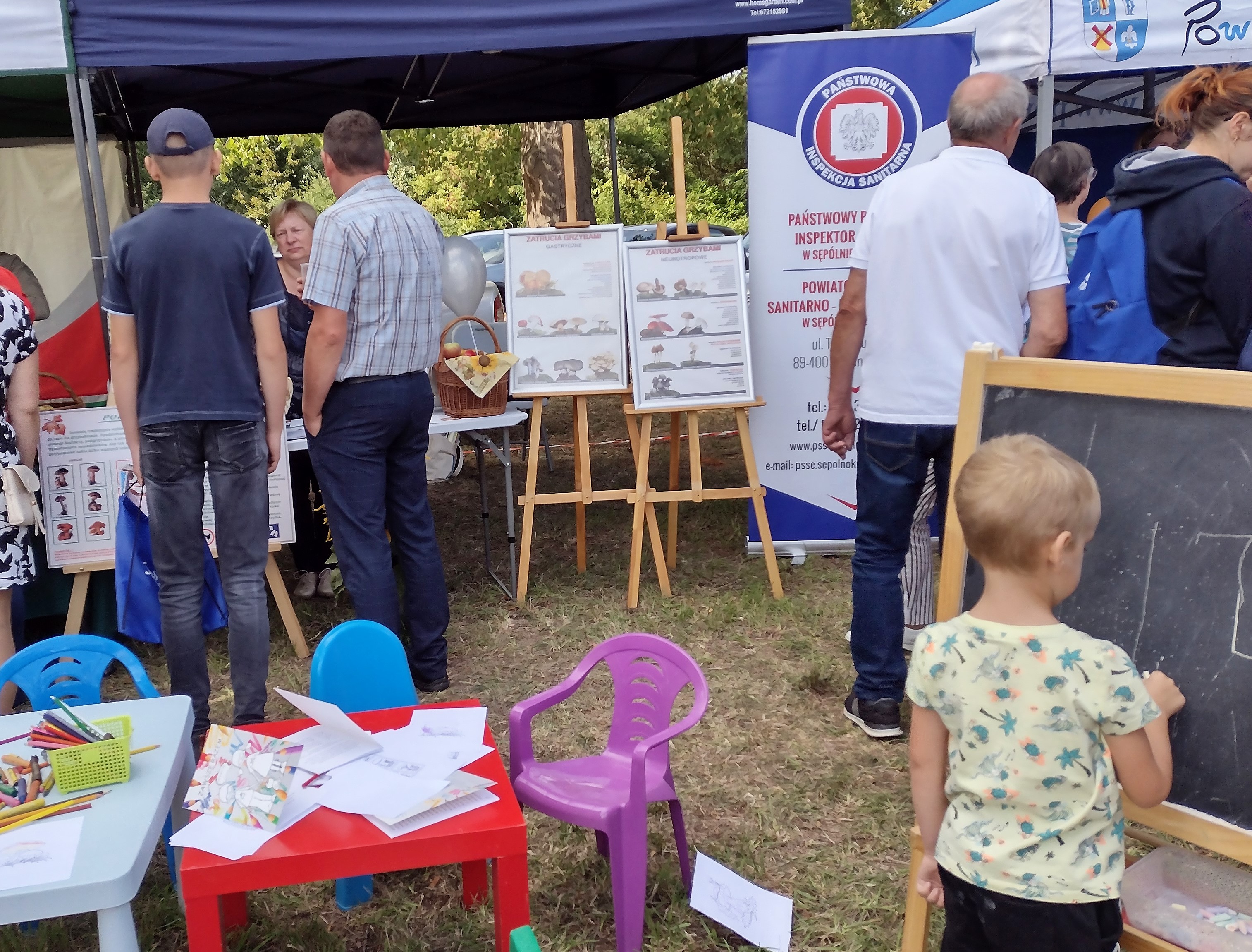 W dniu 4 września pracownicy sępoleńskiej Stacji Sanitarno-Epidemiologicznej wzięli udział w Dożynkach Powiatowo-Gminnych zorganizowanych w Sępólnie Krajeńskim. Wspólnie z przedstawicielami Krajeńskiego Parku Krajobrazowego zorganizowano stoisko informacyjne tematycznie związane z profilaktyka zdrowotną – z naciskiem na edukację w zakresie profilaktyki zatruć grzybami.