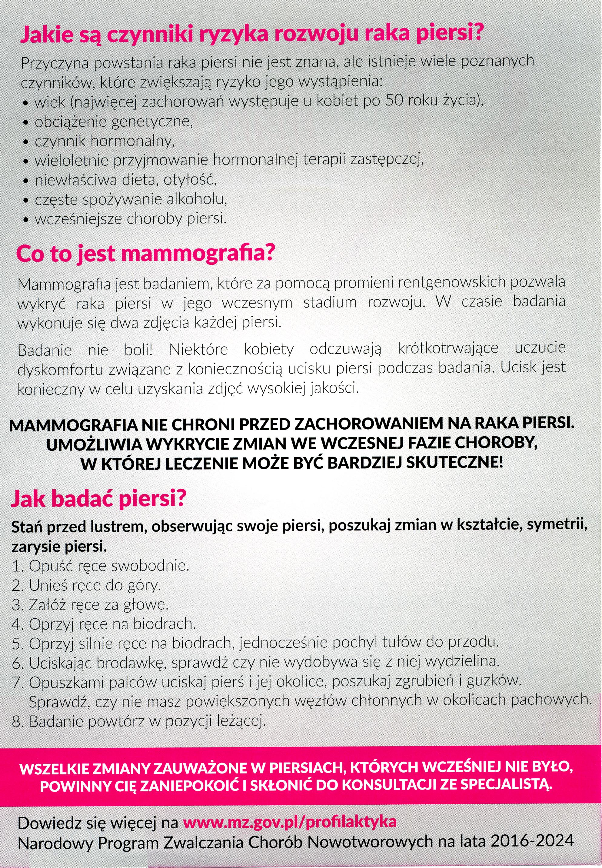Miesiąc raka piersi 2021 30.09.2021 Materiały Ultoka Miesiąc Raka Piersi Miesiąc_raka_piersi_2021.pdf 4.18MB Zdjęcia (4) Pokaż zdjęcie 1 z galerii. Pokaż zdjęcie 2 z galerii. Pokaż zdjęcie 3 z galerii. Pokaż zdjęcie 4 z galerii.