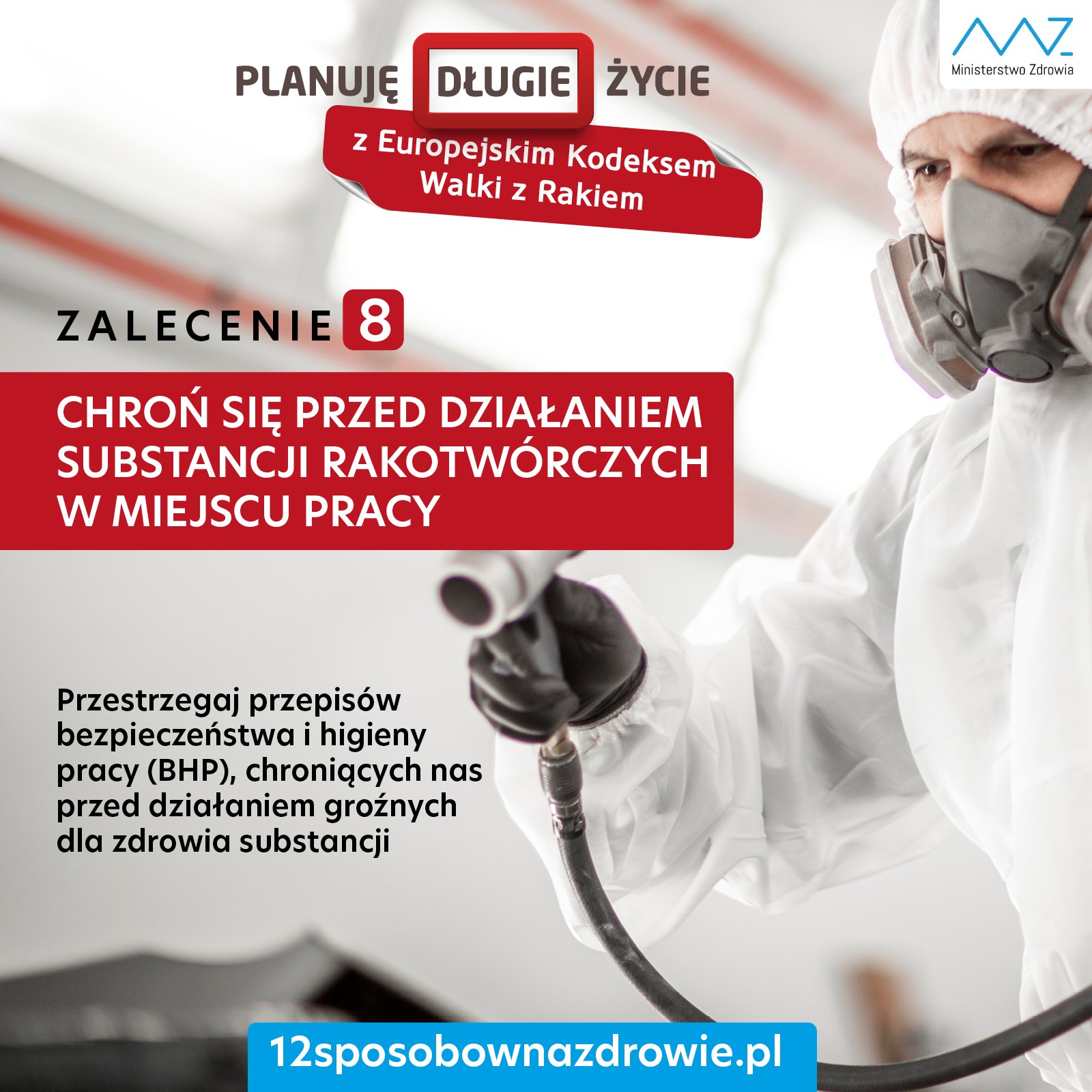 - Chroń się przed działaniem substancji rakotwórczych w miejscu pracy. Postępuj zgodnie z zaleceniami dotyczącymi bezpieczeństwa i higieny pracy.