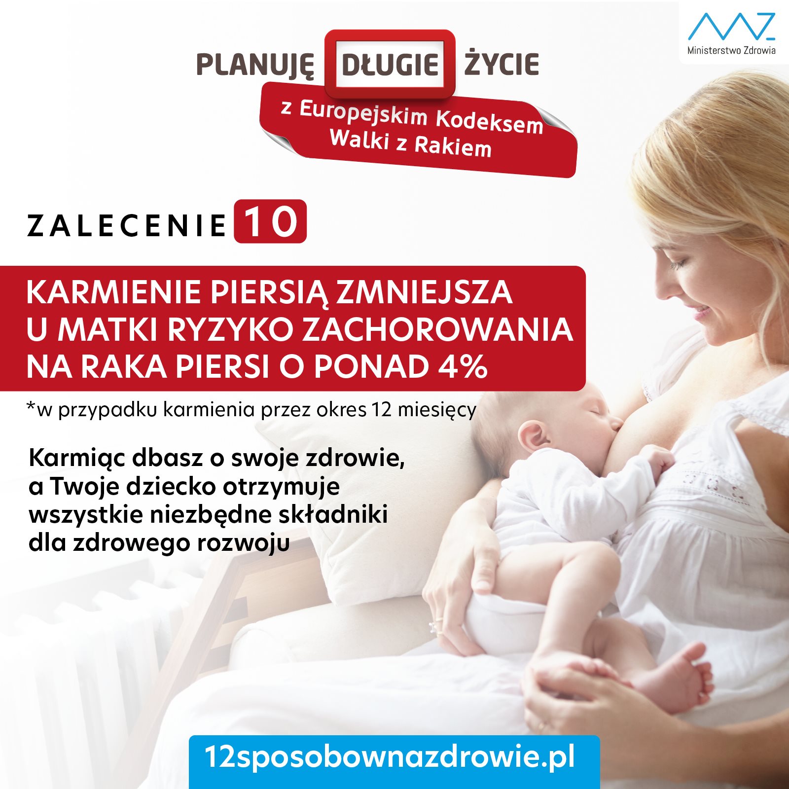 - Kobiety powinny pamiętać o tym, że karmienie piersią zmniejsza u matki ryzyko zachorowania na nowotwory. Jeśli możesz, karm swoje dziecko piersią, hormonalna terapia zastępcza zwiększa ryzyko rozwoju niektórych nowotworów. Ogranicz jej stosowanie.