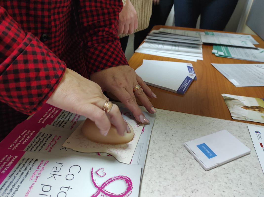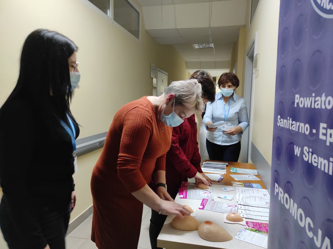 W ramach akcji pracownicy naszej Stacji zorganizowali stoisko profilaktyczne, przy którym udzielano instruktażu samobadania piersi oraz porad dotyczących zdrowego stylu życia.