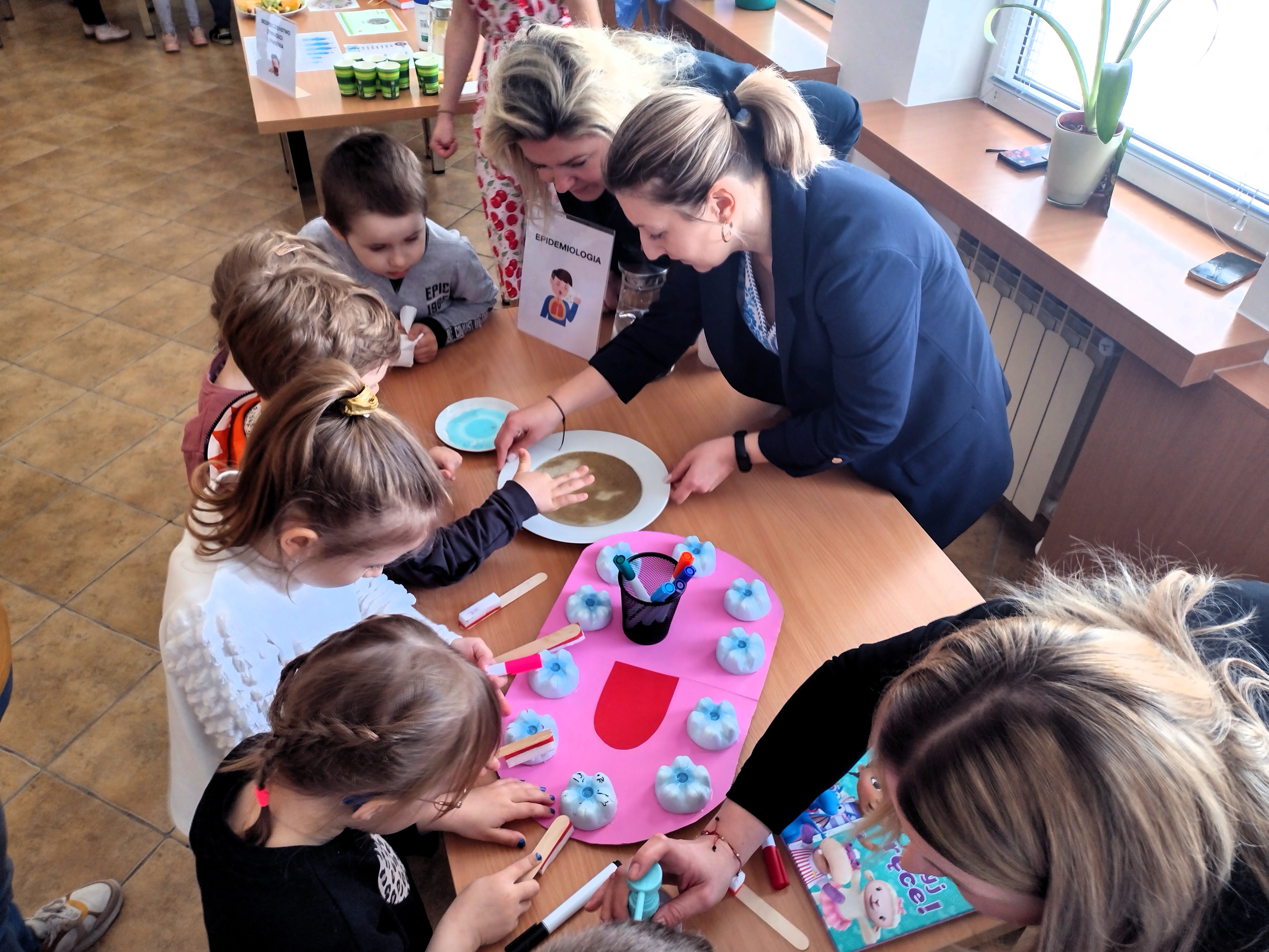 W dniach 8-9 kwietnia w ramach tegorocznych Dni Otwartych naszą stację odwiedziły dzieci z siemiatyckich przedszkoli. Wydarzenie zostało zorganizowane z okazji Światowego Dnia Zdrowia, obchodzonego 7 kwietnia. Podczas wydarzenia miały one okazję zapoznać się z działalnością poszczególnych komórek organizacyjnych Powiatowej Stacji Sanitarno-Epidemiologicznej oraz wziąć udział w przygotowanych specjalnie dla nich działaniach edukacyjnych.