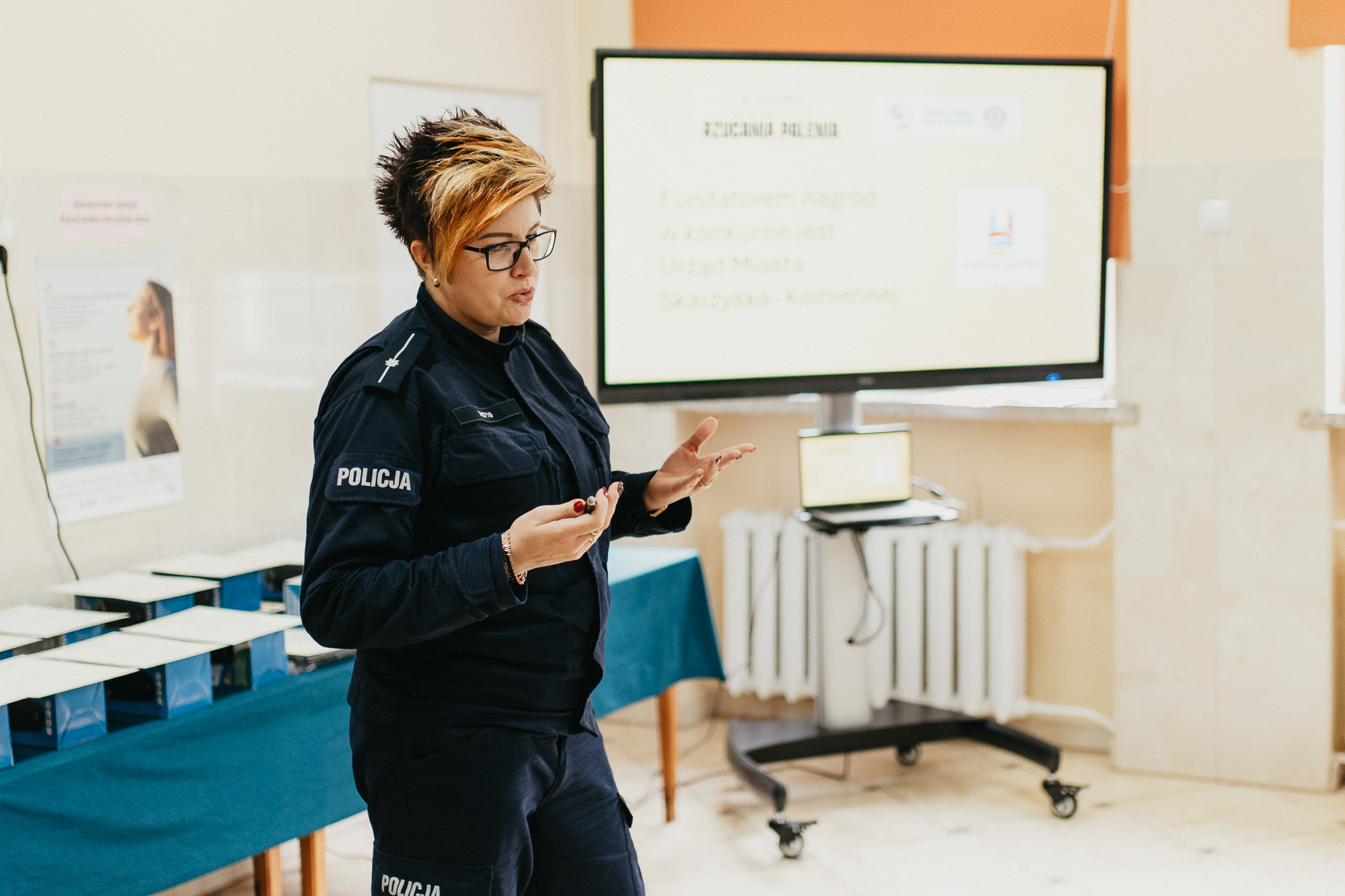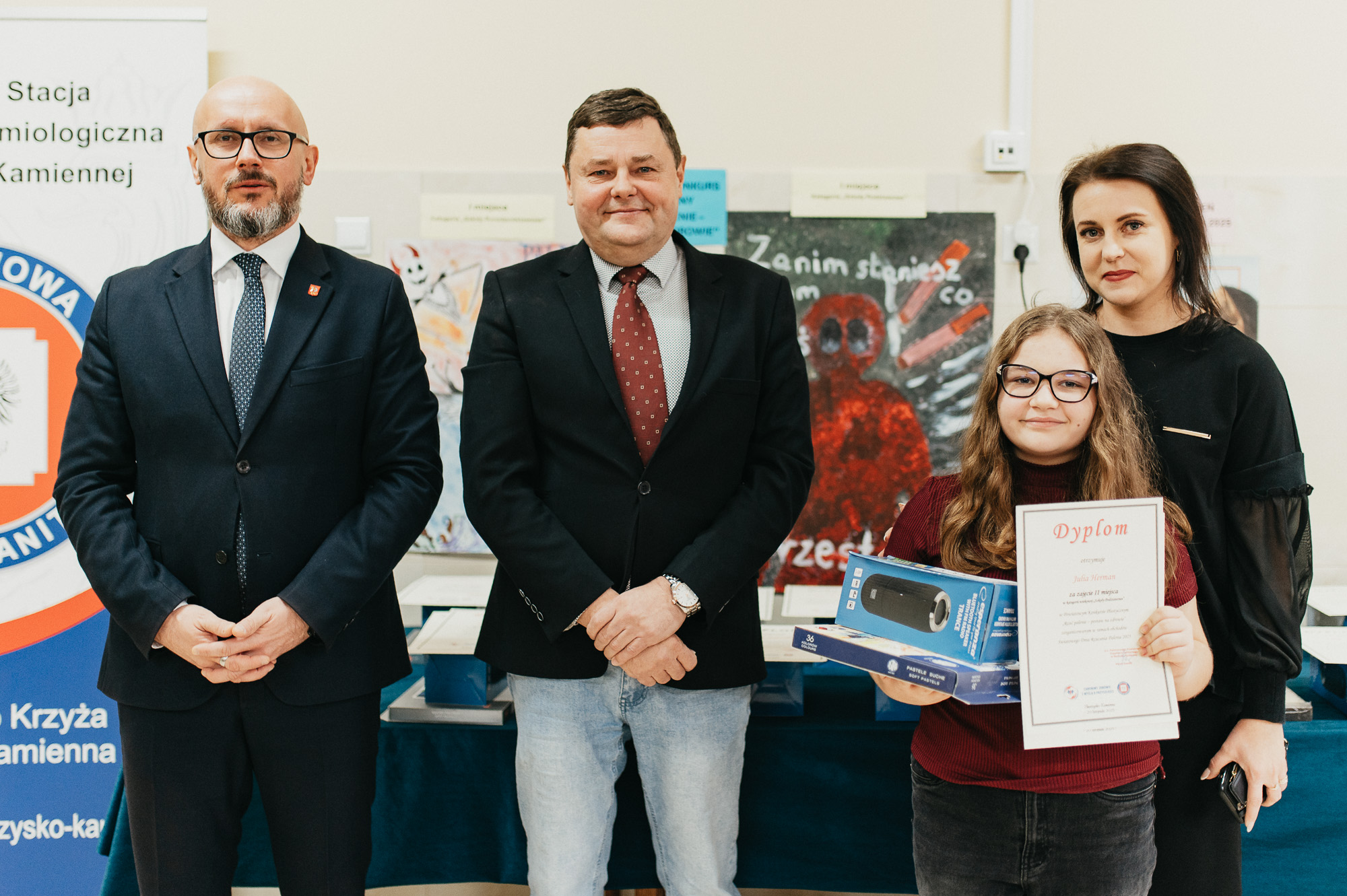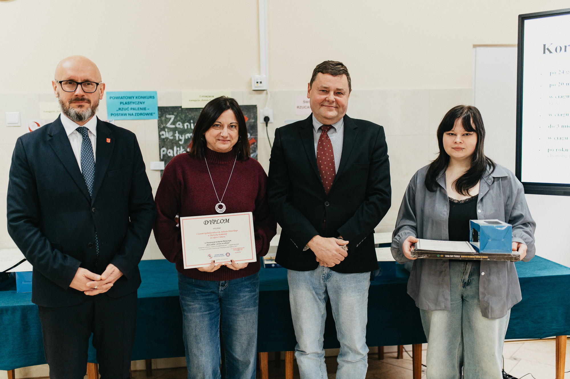 w Skarżysku-Kamiennej odbyło się spotkanie edukacyjne poświęcone obchodom Światowego Dnia Rzucania Palenia 2025. W spotkaniu uczestniczył Prezydent Miasta Skarżyska-Kamiennej Arkadiusz Bogucki, uczniowie, którzy wzięli udział w konkursie plastycznym oraz ich rodzice, nauczyciele i opiekunowie a także członkowie komisji konkursowej, młodzież z I Liceum Ogólnokształcącego w Skarżysku-Kamiennej oraz przedstawiciel Wydziału Zdrowia i Spraw Społecznych Urzędu Miasta Skarżyska-Kamiennej p. Anna Gospodarczyk. Uczestników spotkania powitał Państwowy Powiatowy Inspektor Sanitarny w Skarżysku-Kamiennej Marek Kowalik. Podczas spotkania przekazano informacje dotyczące szkodliwości palenia papierosów, motywacji i wsparcia w procesie rzucania palenia oraz kampanii GIS „Nowe Formy – stare pułapki”. Odczytano zwycięską pracę w Powiatowym Konkursie Literackim „Wybierz zdrowie – nie pal” zorganizowanym przez PSSE Skarżysko-Kamienna we współpracy z Urzędem Miasta Skarżyska-Kamiennej w ramach obchodów Światowego Dnia Bez Tytoniu 2025. Następnie prelekcję na temat szkodliwości wyrobów nikotynowych oraz odpowiedzialności prawnej nieletnich poprowadziła mł. asp. Agnieszka Boszczyk-Górnicka z Komendy Powiatowej Policji w Skarżysku-Kamiennej. W kolejnej części spotkania ogłoszono wyniki i wręczono nagrody dla uczestników Powiatowego Konkursu Plastycznego „Rzuć palenie – postaw na zdrowie”. Organizatorem konkursu był Państwowy Powiatowy Inspektor Sanitarny w Skarżysku-Kamiennej, współorganizatorem konkursu był Urząd Miasta Skarżyska-Kamiennej. Konkurs miał na celu promowanie życia wolnego od nałogu tytoniowego. Uczestnicy mieli za zadanie wykonać pracę plastyczną zachęcającą osoby palące papierosy/używające wyrobów nikotynowych do zerwania z nałogiem. Praca mogła być wykonana dowolną techniką i powinna być związana tematycznie z hasłem i celami konkursu.