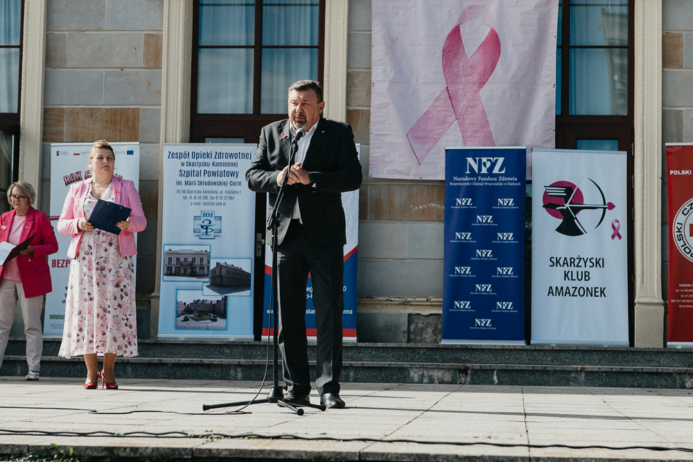 27 września 2024 r. ulicami Skarżyska przeszedł XV Skarżyski Marsz Różowej Wstążeczki. Akcja profilaktyczna miała na celu szerzenie wiedzy na temat profilaktyki raka piersi wśród społeczności lokalnej oraz zachęcanie kobiet do wykonywania badań profilaktycznych w kierunku wykrycia raka piersi, których regularne wykonywanie pozwala wykryć raka we wczesnym stadium zaawansowania a tym samym daje możliwość całkowitego wyleczenia nowotworu. Marsz wyruszył o godz. 11.00 z parkingu przy Miejskim Centrum Sportu i Rekreacji, by ulicami miasta dotrzeć na Plac Staffa pod Miejskie Centrum Kultury, gdzie odbył się piknik profilaktyczny. Uczestników Marszu powitał Państwowy Powiatowy Inspektor Sanitarny w Skarżysku-Kamiennej Pani Anna Chrzanowska a także Świętokrzyski Państwowy Wojewódzki Inspektor Sanitarny Pan Jarosław Ciura, którzy przedstawili profilaktyczną idee Marsz Różowej Wstążeczki. Głos w imieniu organizatorów zabrała prezes Skarżyskiego Klubu Amazonek Pani Elżbieta Waglowska oraz patroni honorowi – Prezydent Miasta Skarżyska-Kamiennej Pan Arkadiusz Bogucki oraz Wicestarosta Powiatu Skarżyskiego Pani Katarzyna Bilska.