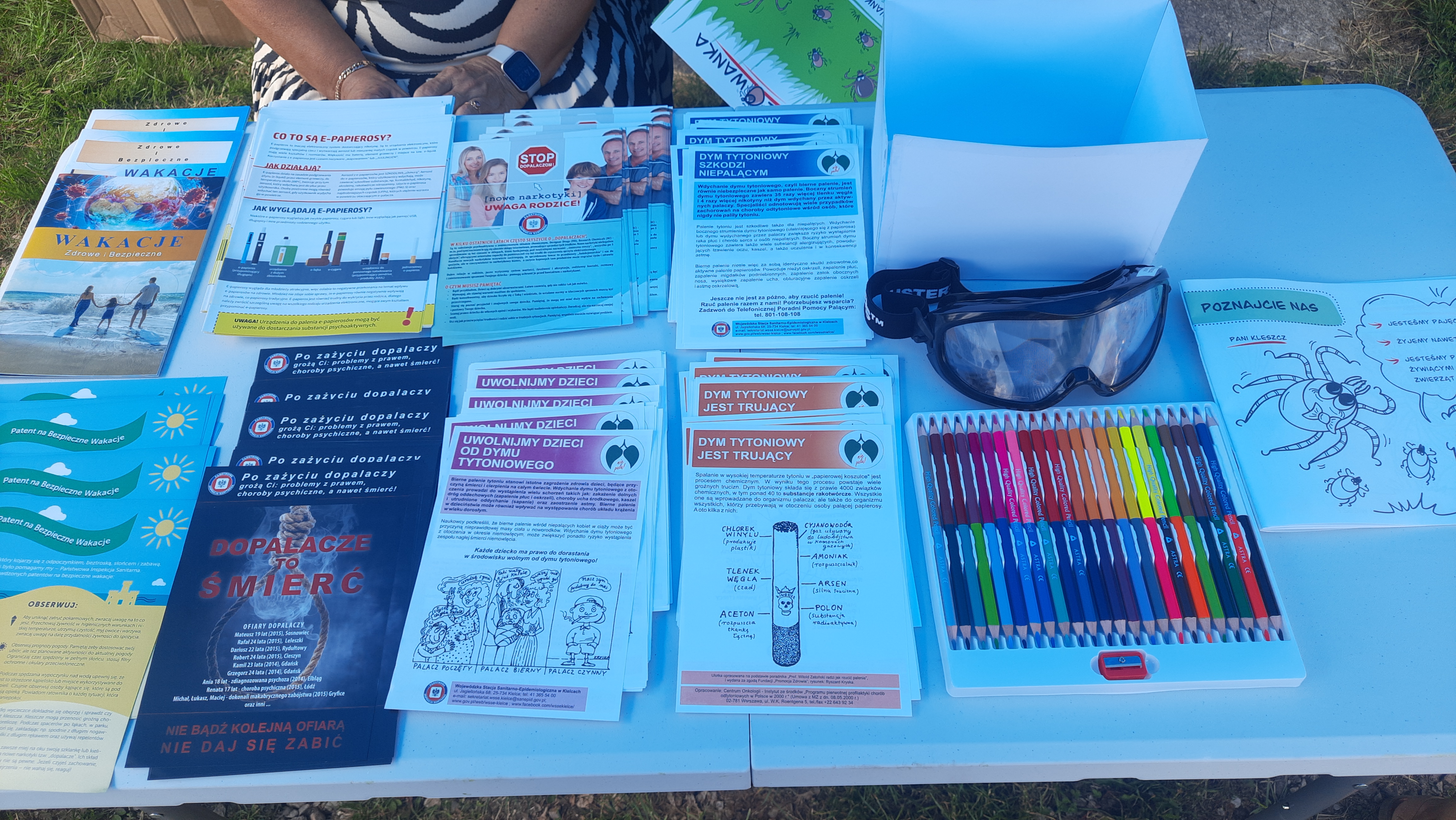 25 czerwca 2023 r. przedstawiciele Powiatowej Stacji Sanitarno-Epidemiologicznej w Skarżysku-Kamiennej wzięli udział w Rodzinnym Festynie Profilaktycznym „Przystań Bliżyn” zorganizowanym przez Wójta Gminy Bliżyn oraz Gminną Komisję Rozwiązywania Problemów Alkoholowych na terenie Placu przed Zameczkiem w Bliżynie. Na zorganizowanym przez PSSE stoisku profilaktyczno-edukacyjnym promowano zdrowy styl życia, kampanię EFSA „Wybieraj Bezpieczną Żywność”, profilaktykę chorób odkleszczowych oraz profilaktykę zatruć grzybami. Przy użyciu alkogogli osoby chętne mogły doświadczyć symulacji zaburzeń funkcjonowania zmysłów po zażyciu alkoholu. Dzieci chętnie kolorowały i wykonywały zadania w kolorowankach „Kleszczowanka”. Prowadzono również dystrybucję materiałów oświatowych dot. m.in. kampanii EFSA „Wybieraj Bezpieczną Żywność”, profilaktyki HIV/AIDS, bezpiecznych i zdrowych wakacji, profilaktyki zażywania dopalaczy, profilaktyki antytytoniowej, profilaktyki zatruć grzybami oraz kolorowanki „Kleszczowanki”.
