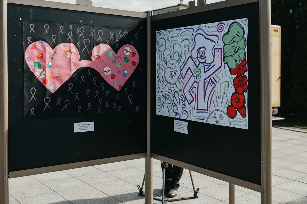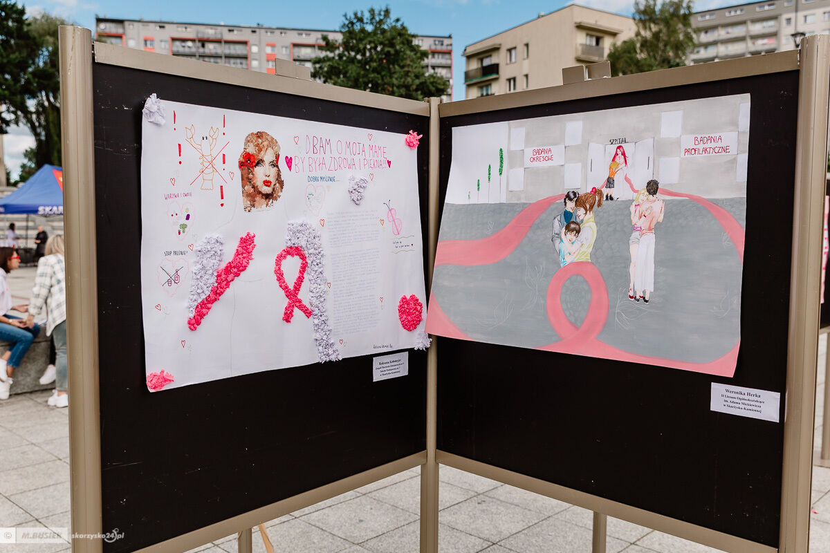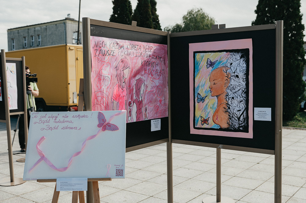 Wystawę prac konkursowych można było obejrzeć na Placu Staffa przy Miejskim Centrum Kultury w Skarżysku-Kamiennej podczas pikniku profilaktycznego w ramach XV Skarżyskiego Marszu Różowej Wstążeczki.