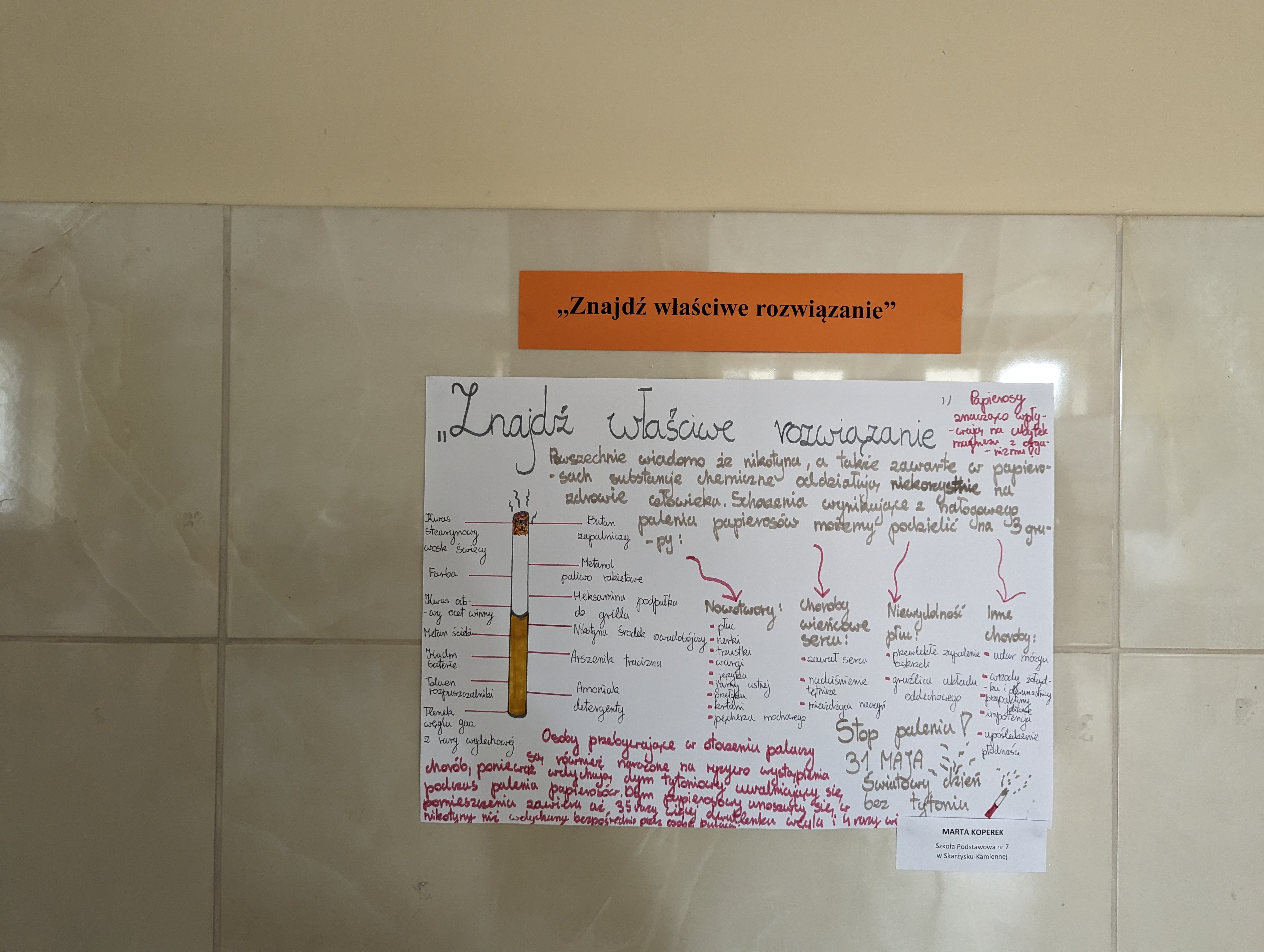 w Skarżysku-Kamiennej odbyło się spotkanie poświęcone obchodom Światowego Dnia Rzucania Palenia 2024, podczas którego nastąpiło rozstrzygnięcie Powiatowego Konkursu Plastycznego „Rzuć palenie razem z nami”. W spotkaniu uczestniczyły dzieci, które wzięły udział w konkursie oraz ich rodzice, nauczyciele i opiekunowie a także członkowie komisji konkursowej oraz Naczelnik Wydziału Zdrowia i Spraw Społecznych Urzędu Miasta Skarżyska-Kamiennej p. Urszula Wiśniewska. Uczestników spotkania powitał Państwowy Powiatowy Inspektor Sanitarny w Skarżysku-Kamiennej. Podczas spotkania przekazano informacje dotyczące szkodliwości palenia papierosów, motywacji i wsparcia w procesie rzucania palenia. Następnie nastąpiło rozstrzygnięcie w/w konkursu plastycznego. Organizatorem konkursu był Państwowy Powiatowy Inspektor Sanitarny w Skarżysku-Kamiennej. Współorganizatorem konkursu był Urząd Miasta Skarżyska-Kamiennej. Konkurs miał na celu promowanie wśród dzieci i ich rodziców zachowań korzystnych dla zdrowia wynikających z życia wolnego od nałogu tytoniowego. Uczestnicy mieli za zadanie wykonać pracę plastyczną zachęcającą osoby palące do zerwania z nałogiem tytoniowym oraz promującej życie wolne od nałogu tytoniowego. Praca mogła być wykonana dowolną techniką i powinna być związana tematycznie z hasłem i celami konkursu.