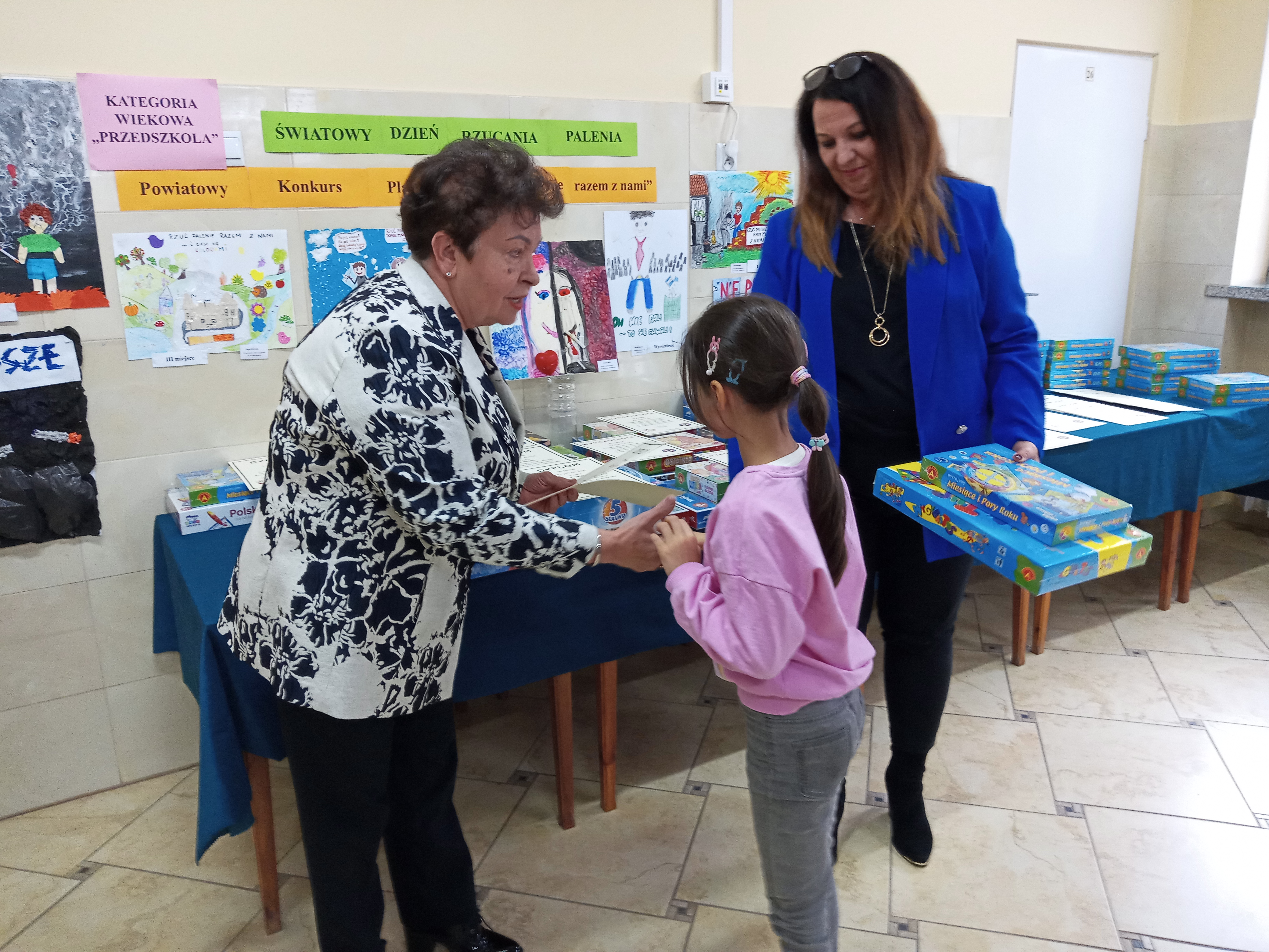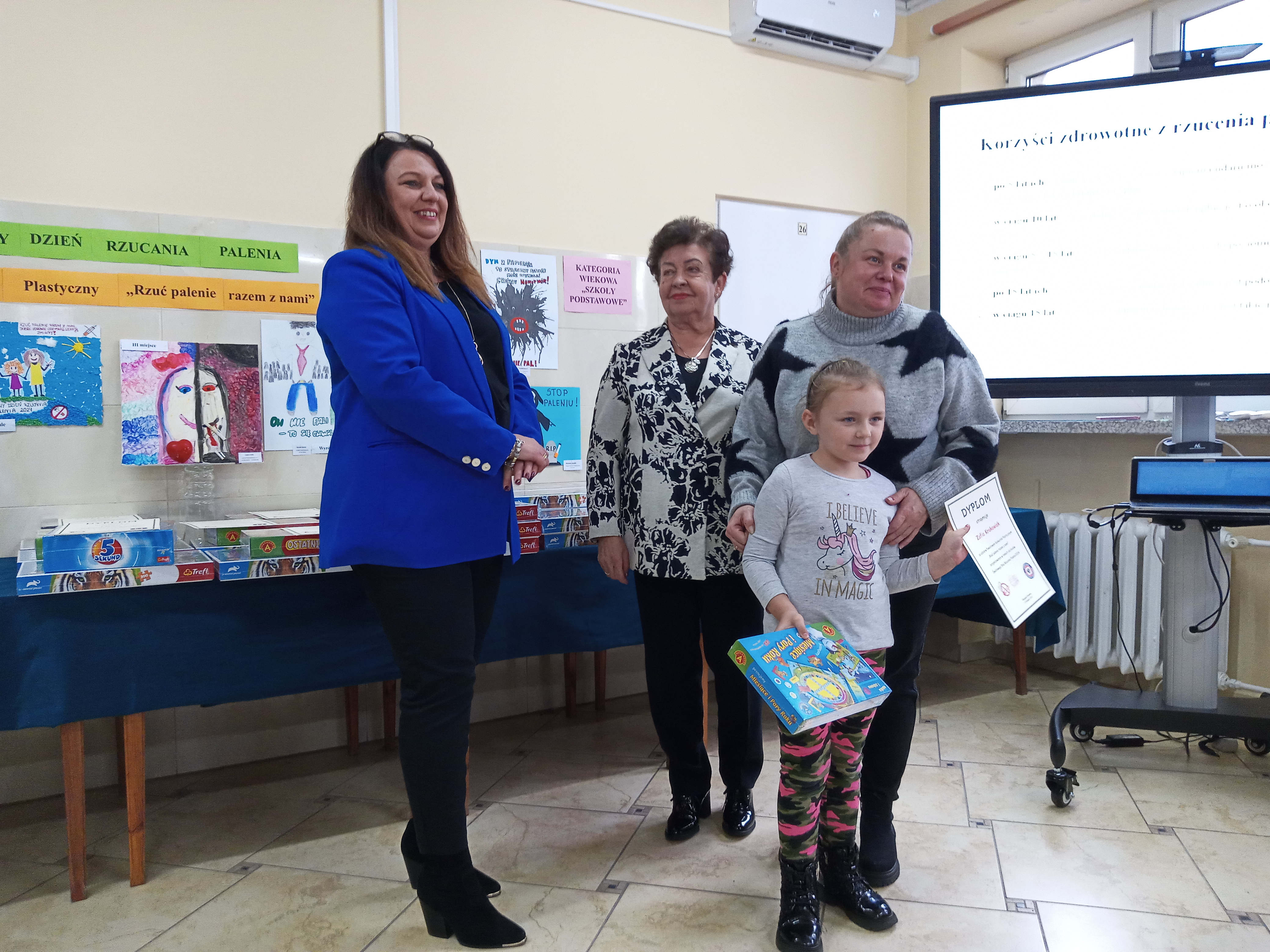 Przed przystąpieniem do ogłoszenia wyników i wręczenia nagród dla uczestników konkursu głos zabrała p. Urszula Wiśniewska reprezentująca Urząd Miasta Skarżyska-Kamiennej oraz członkowie komisji konkursowej. W swoich przemówieniach Panie nawiązały do profilaktyki antytytoniowej oraz podsumowania prac konkursowych, a także podziękowały za udział