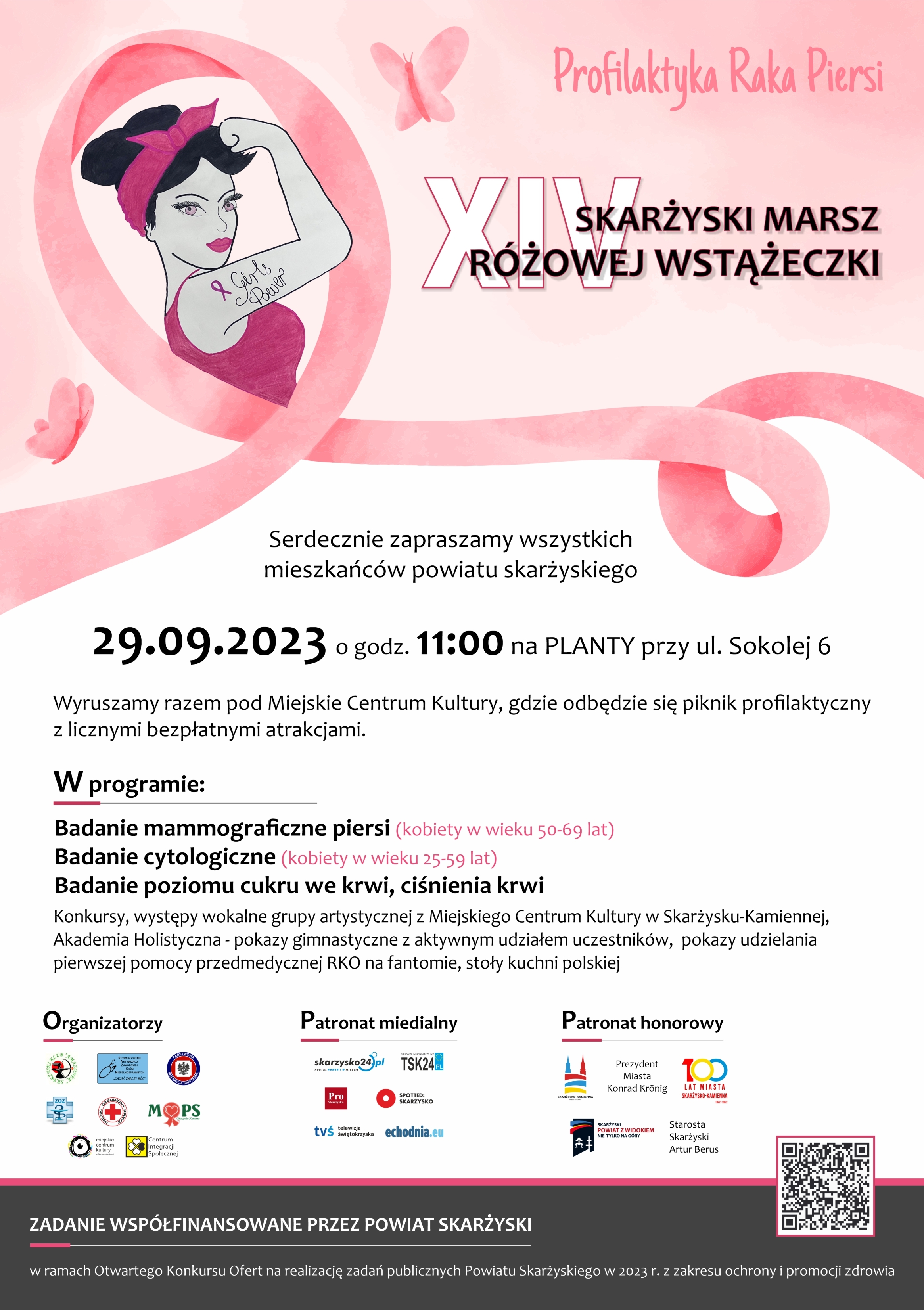 Serdecznie zapraszamy do wzięcia udziału w XIV Marszu Różowej Wstążeczki w Skarżysku-Kamiennej połączonym z piknikiem profilaktycznym, podczas którego chcemy zapewnić liczne atrakcje oraz możliwość wykonania badań profilaktycznych.