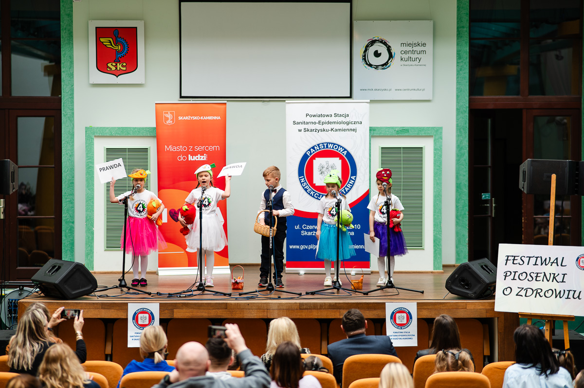 09 kwietnia b.r. na Sali „Patio” w Miejskim Centrum Kultury w Skarżysku-Kamiennej po raz kolejny młodzi artyści z przedszkoli i szkół podstawowych zaprezentowali autorskie piosenki promujące zdrowie i zdrowy styl życia. A wszystko to w ramach XVII Powiatowego Festiwalu Piosenki o Zdrowiu, który zorganizowano z okazji obchodów Światowego Dnia Zdrowia 2026. Organizatorem wydarzenia była Powiatowa Stacja Sanitarno-Epidemiologiczna w Skarżysku-Kamiennej a współorganizatorami Urząd Miasta w Skarżysku-Kamiennej oraz Miejskie Centrum Kultury w Skarżysku-Kamiennej. XVII Powiatowy Festiwal Piosenki o Zdrowiu współfinansowany był ze środków budżetu Gminy Skarżysko-Kamienna.
