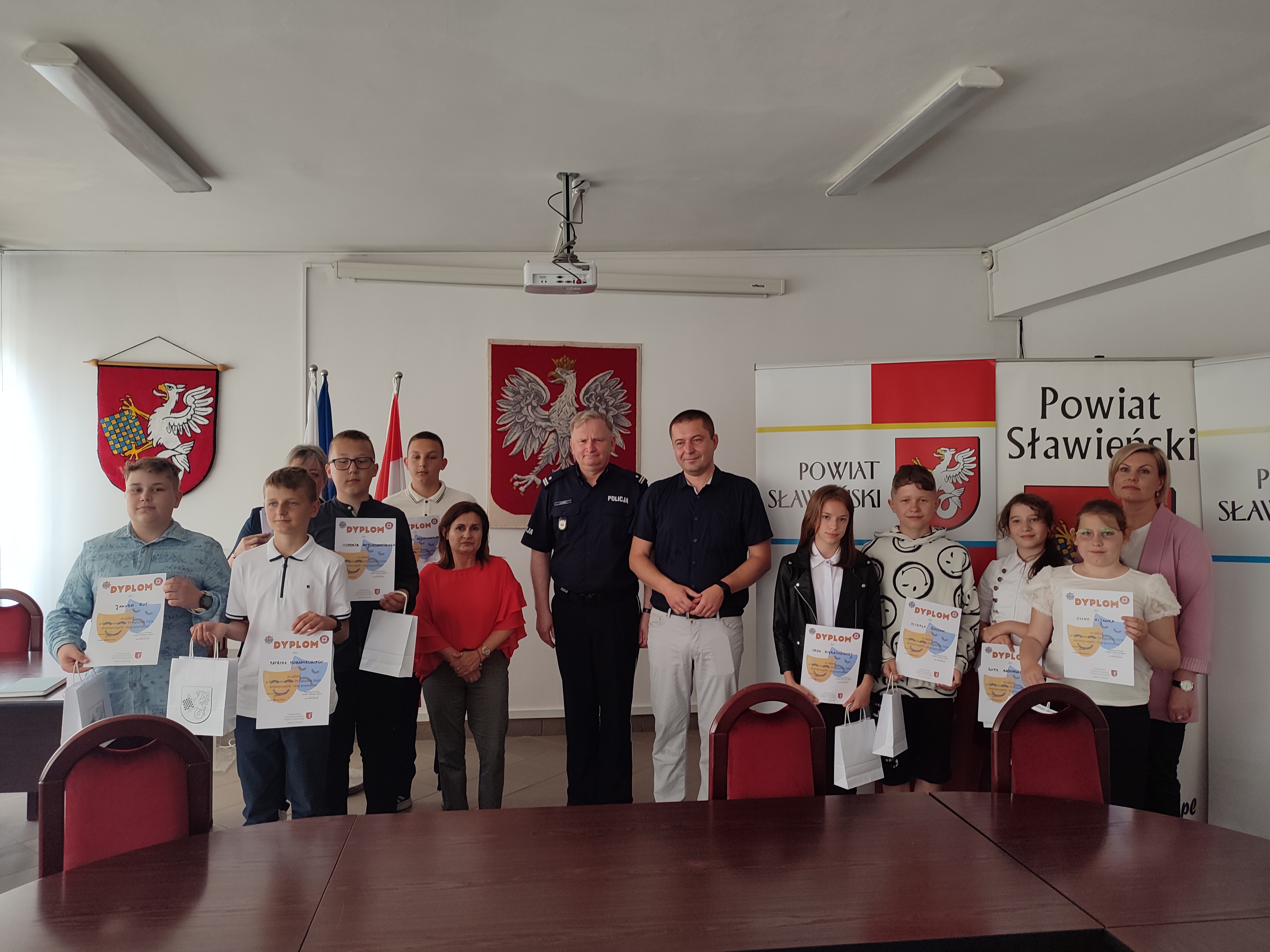 Młodzi artyści oraz ich opiekunowie otrzymali dyplomy i nagrody ufundowane przez Starostwo Powiatowe w Sławnie. Ich wręczenia dokonali kierownik Oddziału Nadzoru Powiatowej Stacji Sanitarno – Epidemiologicznej w Sławnie mgr Irena Kowalkowska, Komendant Powiatowy Policji w Sławnie podinsp. Andrzej Kamoda oraz Wicestarosta Powiatu Sławieńskiego Andrzej Protasewicz.