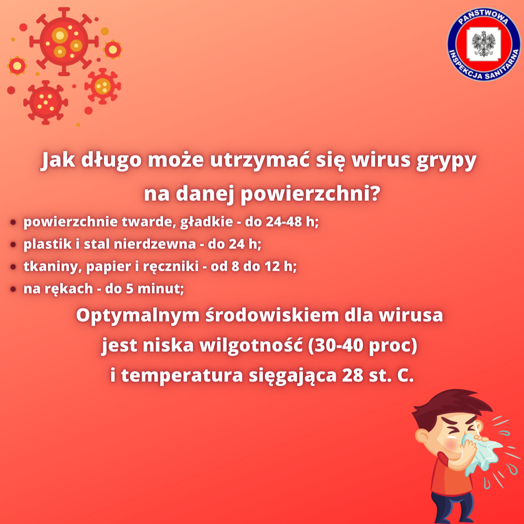 Przeżywalność wirusa grypy w środowisku jest jednym z czynników wpływających na jego rozprzestrzenianie się w populacji, dlatego tak duże znaczenie odgrywa dezynfekcja i dekontaminacja środowiska. A jak długo wirus grypy może przetrwać na różnych powierzchniach?
