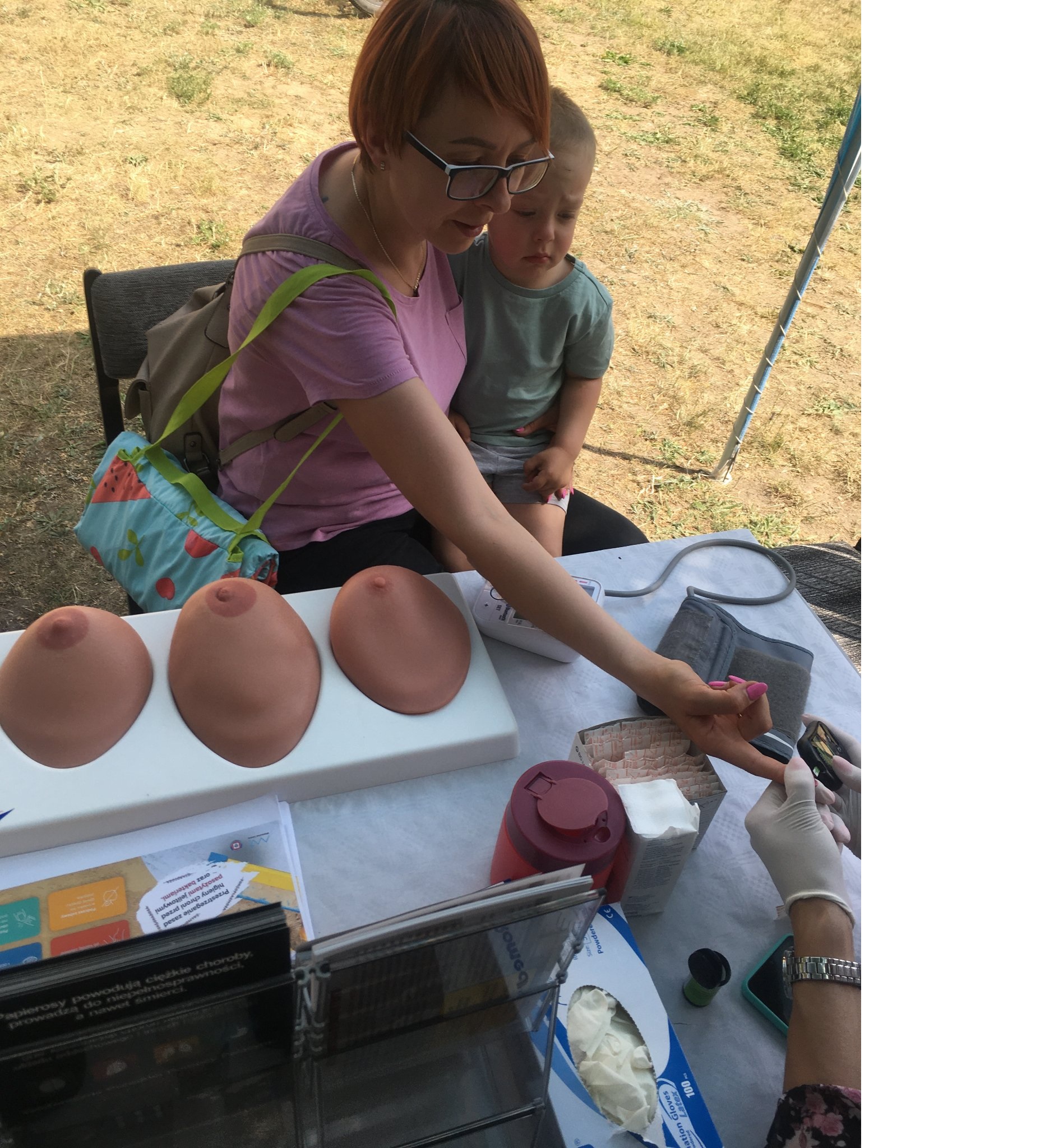 19 maja zostaliśmy zaproszeni do udziału w Festynie Rodzinnym zorganizowanym w Słubickim Przedszkolu „Jarzębinka”. Podczas festynu rozdawaliśmy ulotki informacyjne związane z naszym zdrowiem i materiały edukacyjne min. nawiązujące do obchodzonego 22 maja Europejskiego Dnia Walki z Otyłością i zbliżającego się Światowego Dnia Bez Tytoniu . Odwiedzający nasze stoisko, mogli sobie zmierzyć ciśnienie oraz poziom cukru we krwi. Udzielałyśmy instruktażu samobadania piersi, przedszkolaki natomiast pokazywały na modelu jak myją ząbki. Organizator zapewnił dzieciom i rodzicom wiele atrakcji: występy artystyczne, gry i zabawy do których angażowani byli również rodzice oraz zdrowe przekąski.