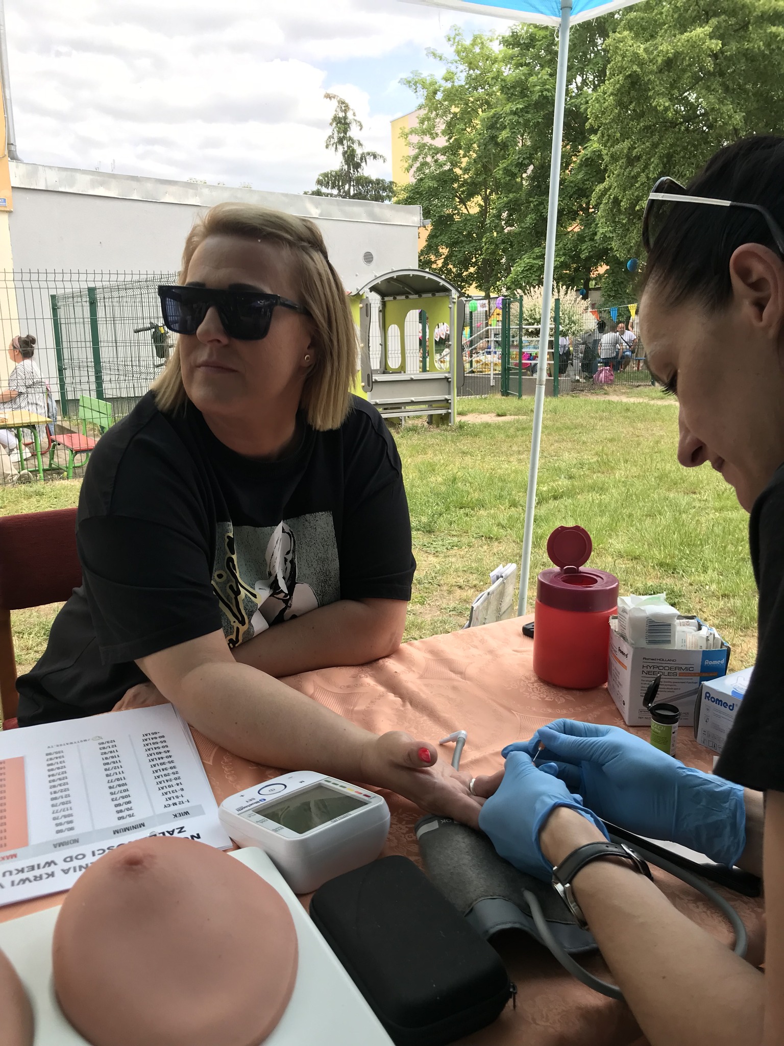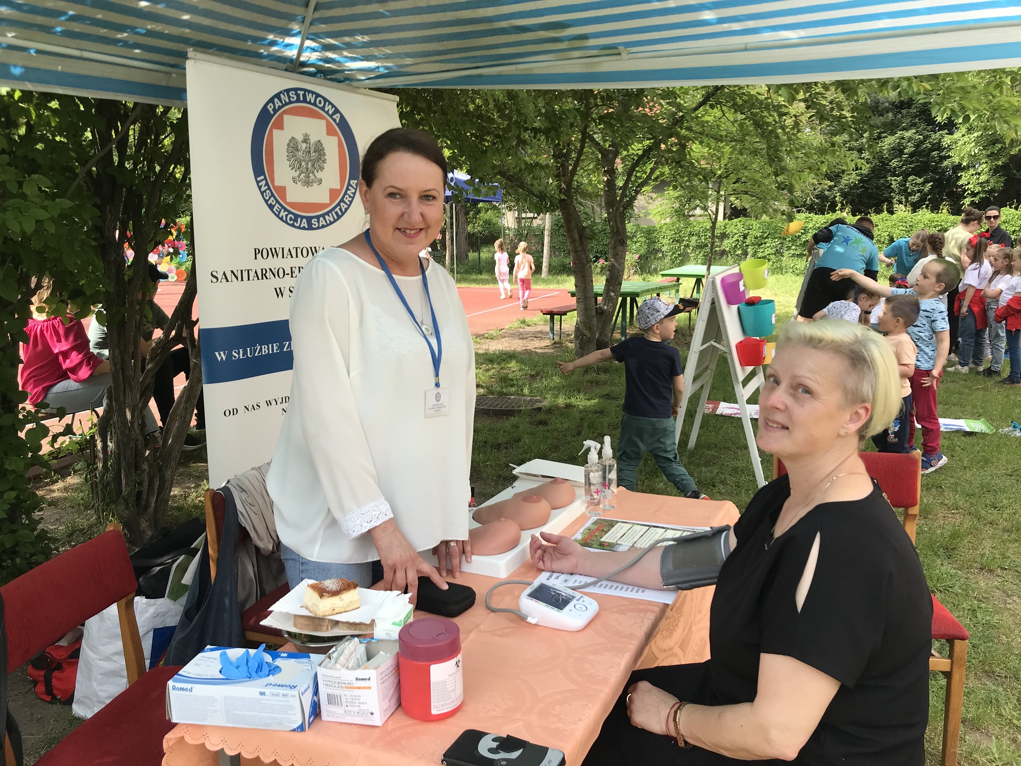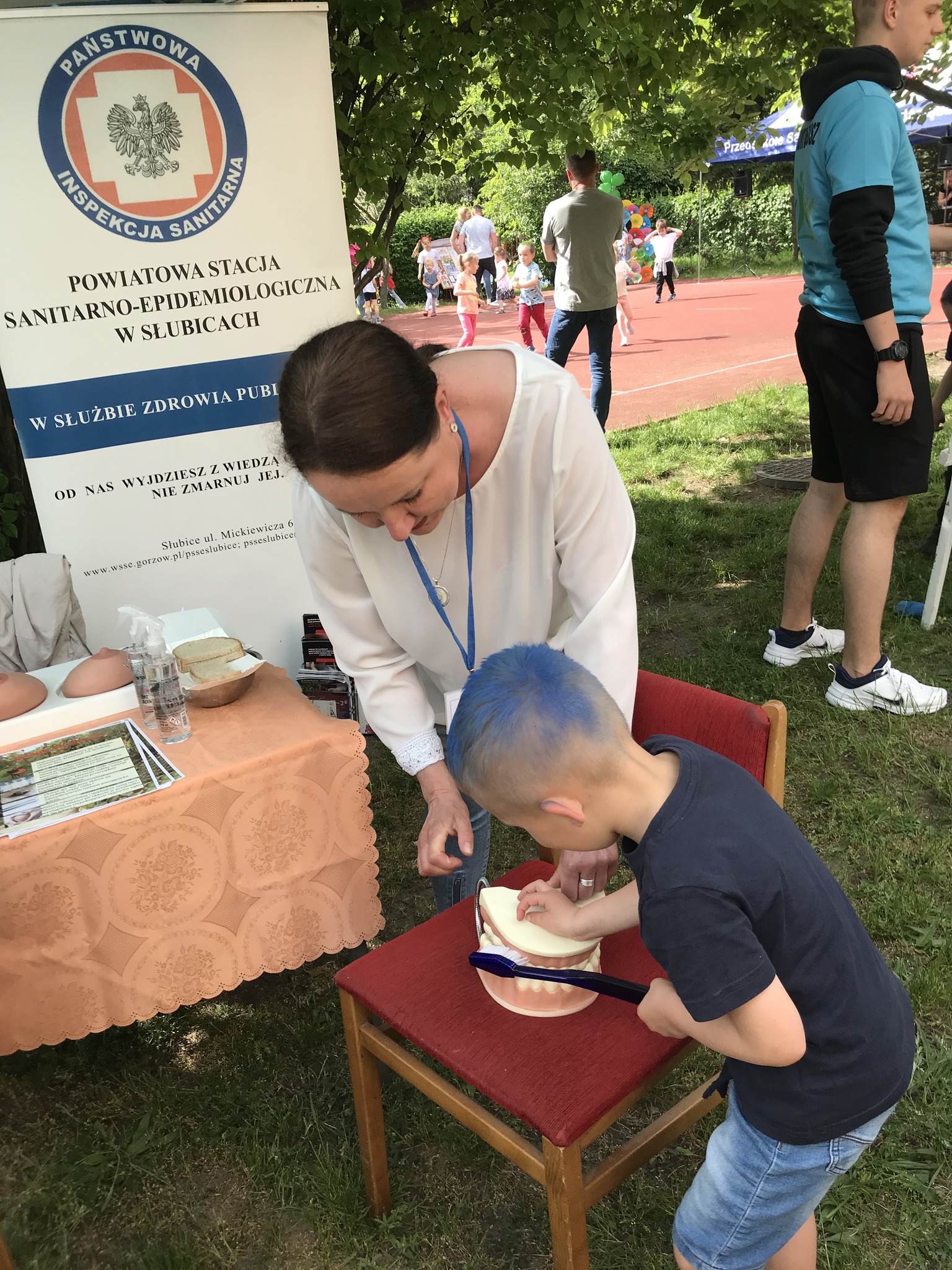25 maja odwiedziłyśmy słubickie przedszkole „Jarzębinka”, gdzie odbywał się festyn rodzinny. Rodziny przybyły tłumnie, były występy przedszkolaków oraz ogłoszono wyniki konkursu prac plastycznych odbywającego się pod hasłem „O swoje zdrowie dbam, wiele ciekawych zajęć mam”. Tradycyjnie w naszym Punkcie Promocji Zdrowia było mierzone ciśnienie tętnicze, badany był poziom cukru we krwi, udzielałyśmy instruktażu samobadania piersi oraz udostępniałyśmy materiały edukacyjne nawiązujące do zdrowego odżywiania, Światowego Dnia bez Tytoniu, chorób zakaźnych i szczepień. Wśród dzieci największym powodzeniem cieszył się instruktaż i możliwość pokazania na modelu jak ładnie i dokładnie myją ząbki. Organizatorzy przygotowali wiele atrakcji oraz zdrowe przekąski dla wszystkich gości imprezy. Cieszymy się ze spotkania i bardzo dziękujemy.