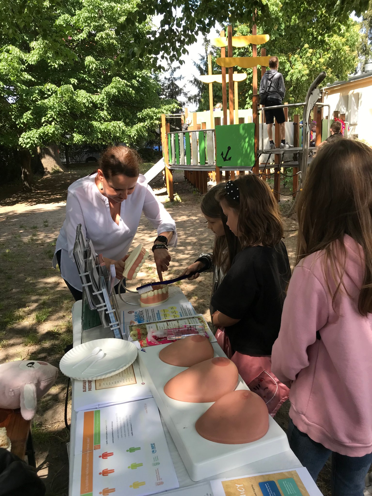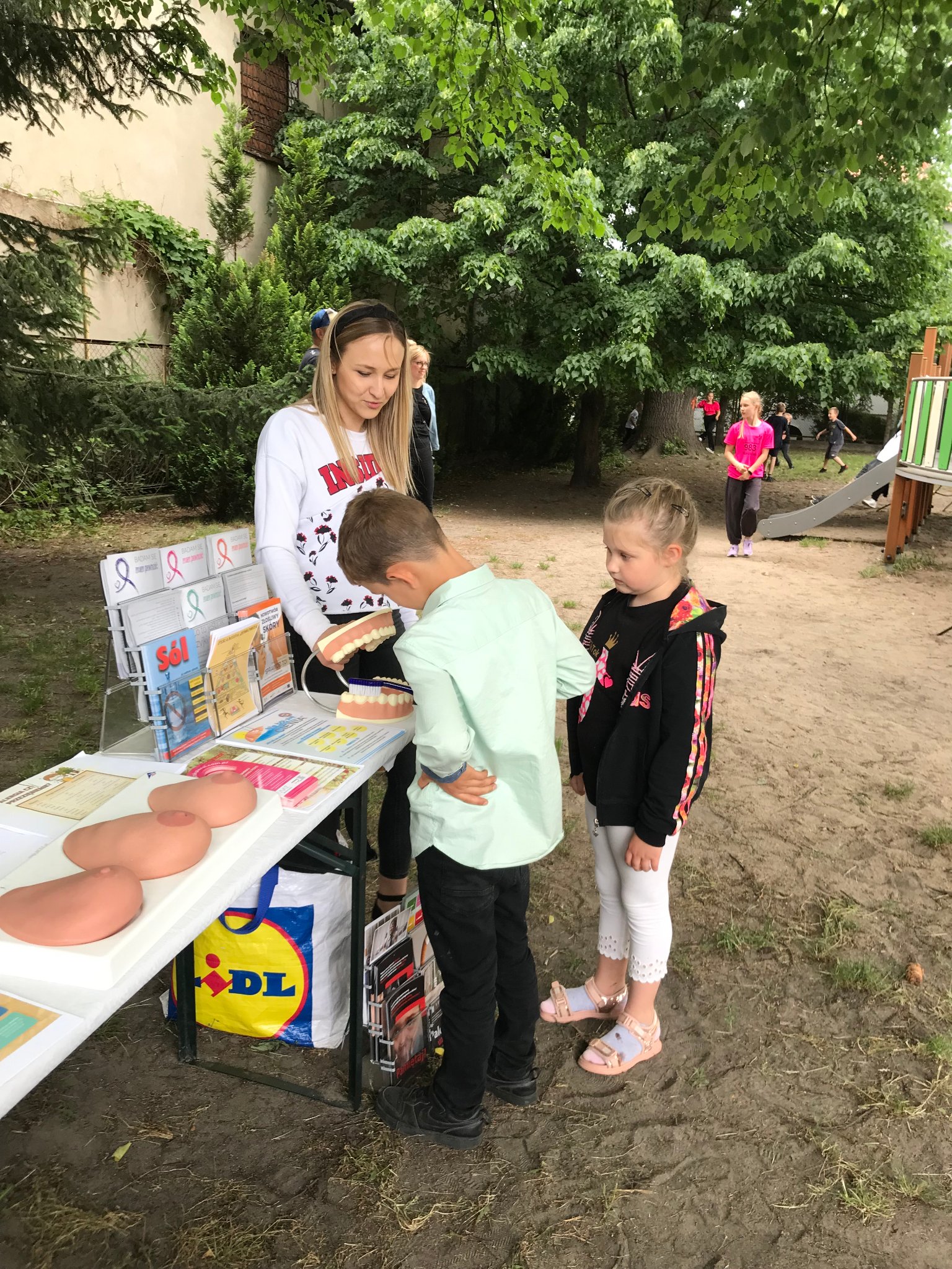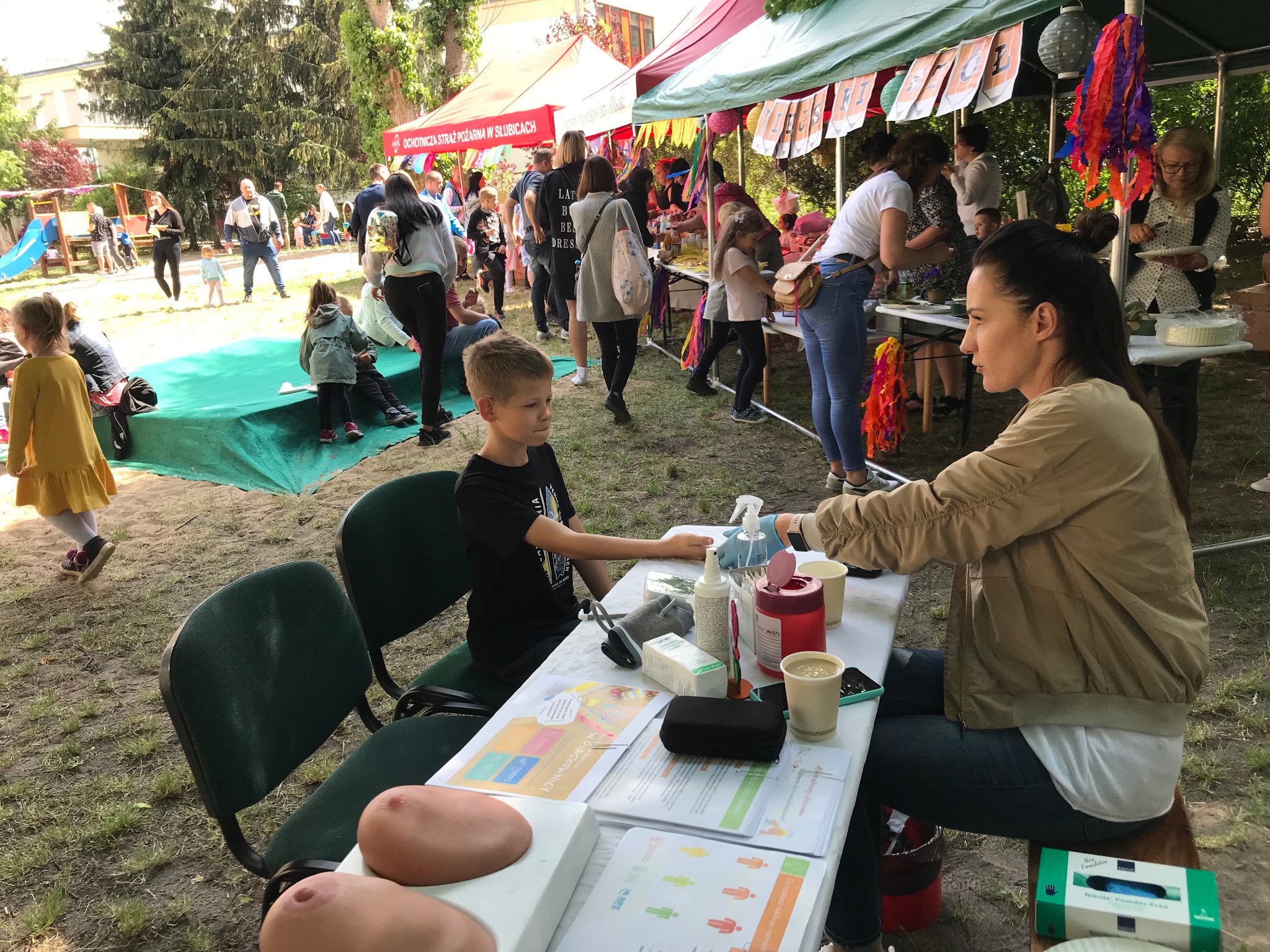 26 maja udało nam się odwiedzić Słubickie Przedszkole „Krasnal Hałabała”, gdzie odbywał się piknik rodzinny. Tradycyjnie w naszym Punkcie Promocji Zdrowia było mierzone ciśnienie tętnicze, badany był poziom cukru we krwi, udzielałyśmy instruktażu samobadania piersi oraz udostępniałyśmy materiały edukacyjne nawiązujące do zdrowego odżywiania, Światowego Dnia bez Tytoniu i zbliżających się wakacji. Wśród dzieci największym powodzeniem cieszyła się możliwość pokazania na modelu jak ładnie i dokładnie myją ząbki. Organizatorzy przygotowali wiele atrakcji oraz zdrowe przekąski dla wszystkich gości imprezy.