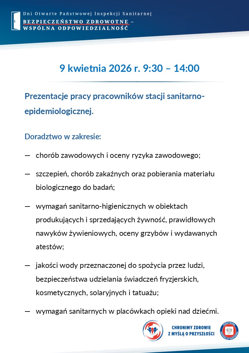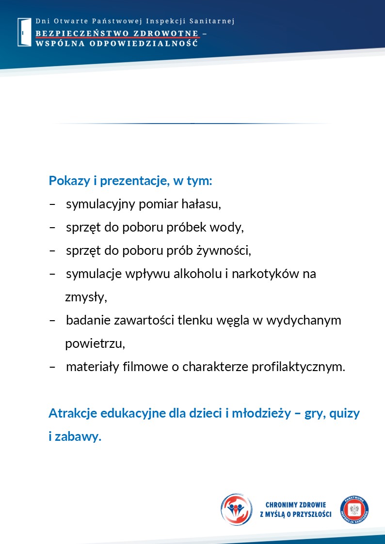 Dni Otwarte Państwowej Inspekcji Sanitarnej Bezpieczeństwo zdrowotne - wspólna odpowiedzialność.