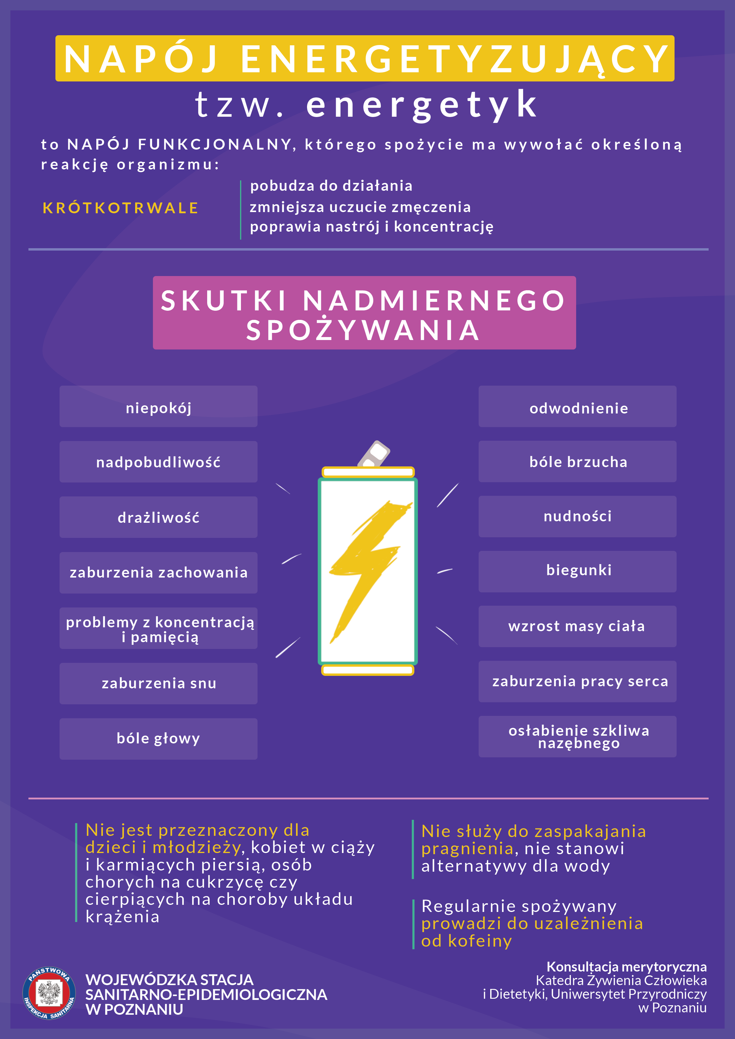 Chcesz dowiedzieć się więcej na temat napojów energetyzujących, zapoznaj się z infografikami opracowanymi przez pracowników Wojewódzkiej Stacji Sanitarno-Epidemiologicznej w Poznaniu