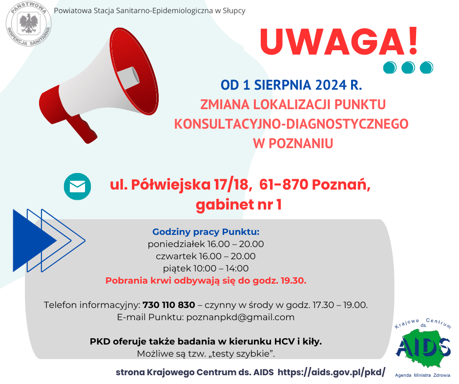 Od 1 sierpnia 2024 roku Punkt Konsultacyjno – Diagnostyczny HIV w Poznaniu zmienił lokalizację